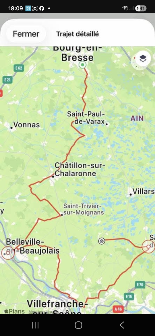Beaux paysages, certaines petites routes de campagnes a eviter en grosse cylindre peut etre. Traversees de jolies communes. Nous sommes parries de chalamont, pour Peronnas et direction chatillon sur chalaronne, bellevilles, retour via Travoux et st andre de corcy.