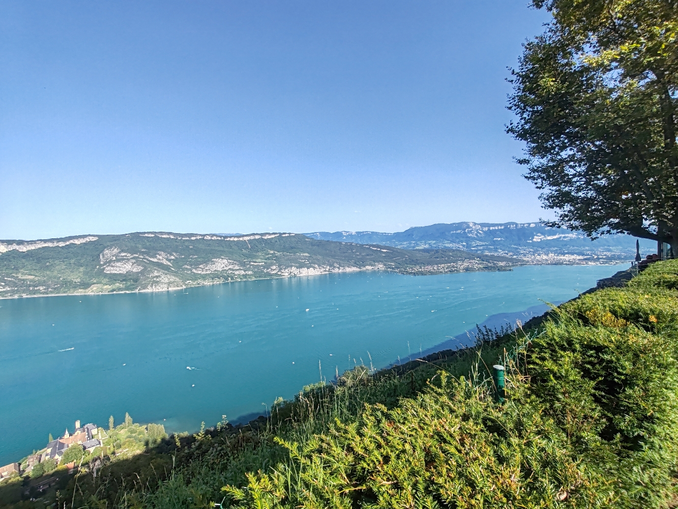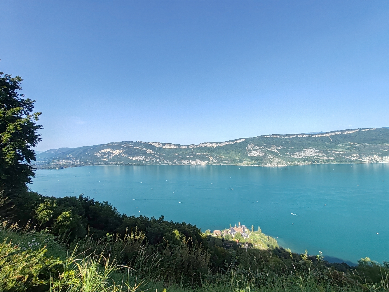 Retour Tranquille à la maison sous le soleil, il fait chaud sous le casque 😀😀, en passant par le col du chat, plein de virages, Quasiment personne sur la route et un panorama magnifique à Conjux. Arrivée à la maison avec des gros nuages noirs mais pas de pluie.