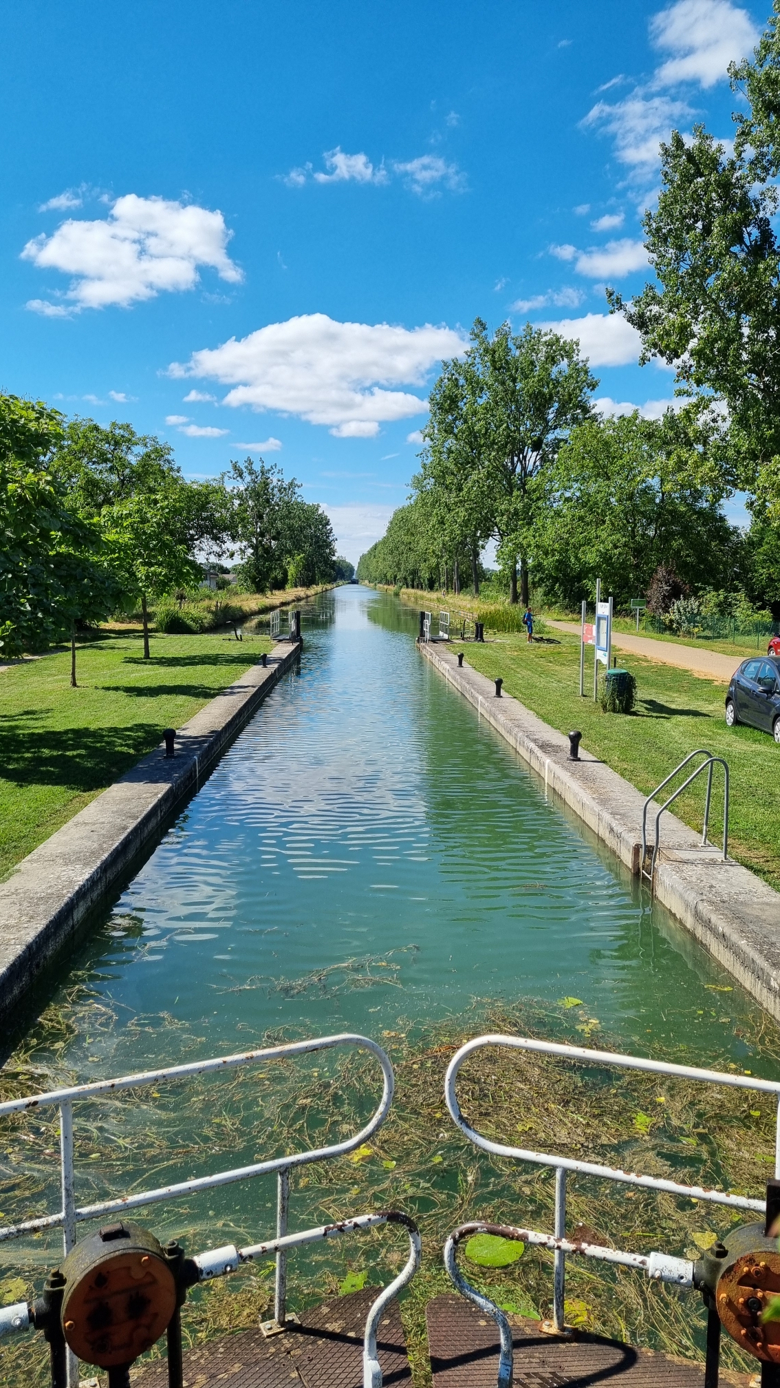 De tout, autoroute sur Suisse pour avancer un peu ensuite virages en épingles pour monter sur St Croix, belle route, goudron au top, pour continuer ensuite sur départementales, longues lignes droites dans le Jura, petites routes en forêt, re-départementales, longé le canal de Bourgogne et ses écluses et traversée de Dijon.