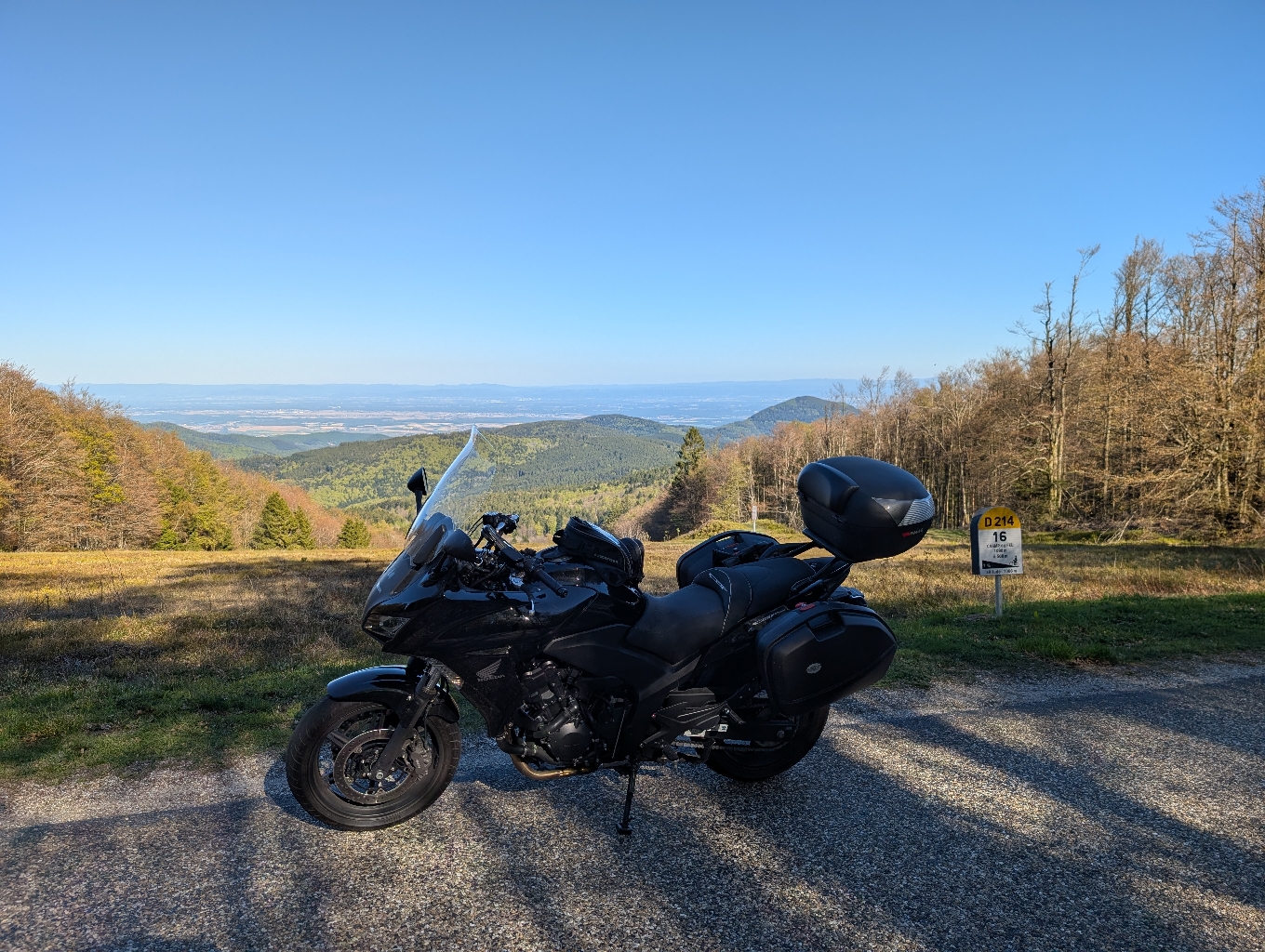 Très belle balade dans les Vosges avec le col de Steige, le col de la Charbonnière le Champ du feu et le Mt Ste Odile, beaucoup de virages et de belles vues sur la plaine d'Alsace. On peut se restaurer un peu partout ou simplement boire un café et une tarte aux myrtilles ou un super soufflé glacé au Grand Marnier au col de la Charbonnière avec la vue sur un croisement où passent beaucoup de motos. TOP.