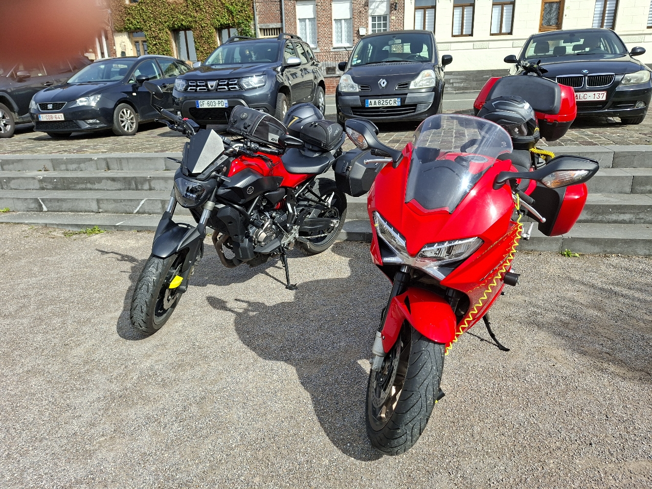 Route fluide, droite et roulante. Nous ne passerons pas par les autoroutes mais départementales françaises et les villages bien sûr. Nous partons sur 4 jours et 3 nuits en hôtel avec parking sécurisé et de quoi attacher les motos. Chambre vue sur les motos à chaque fois.