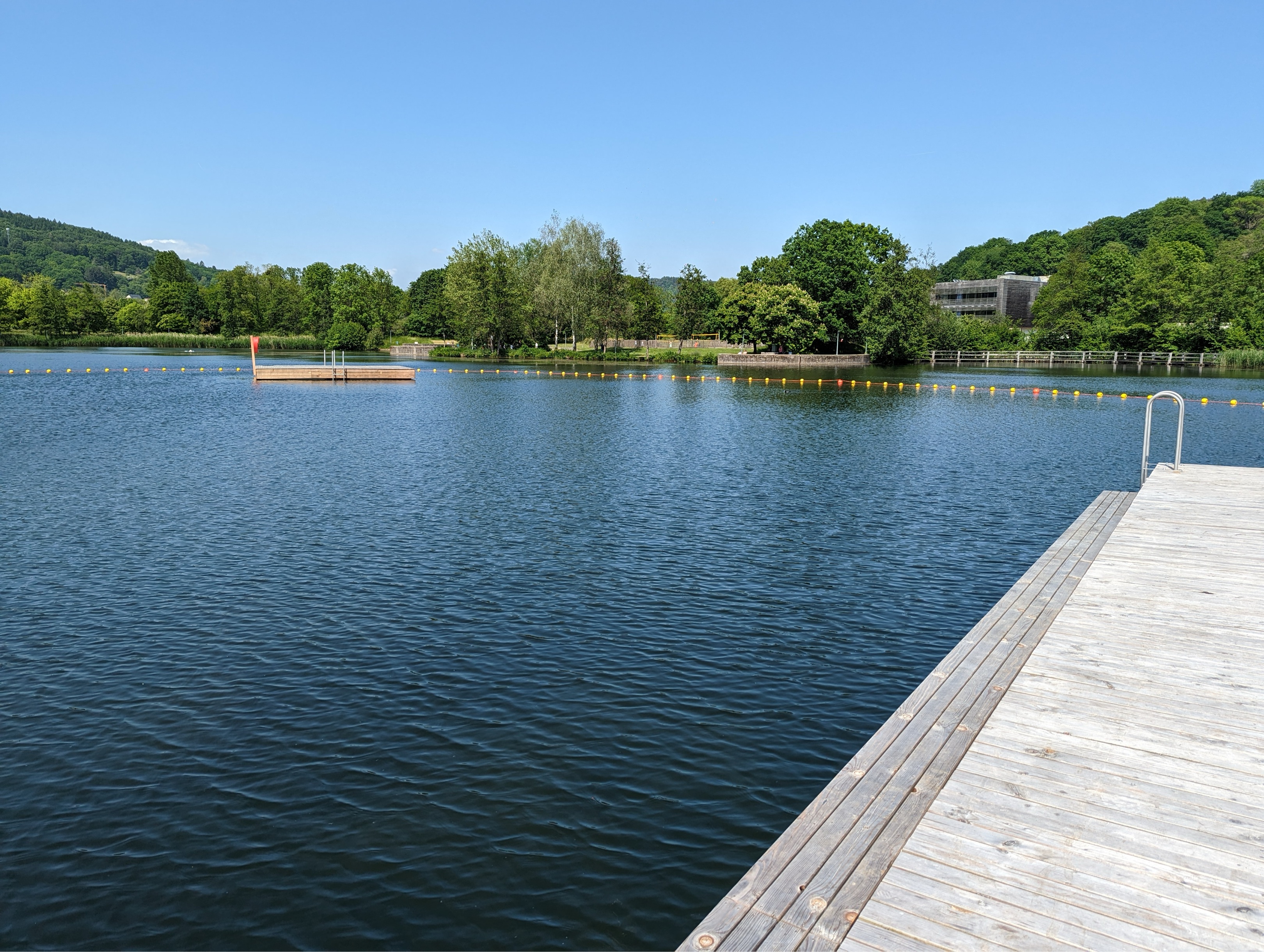 Pause au lac d’Echternach (stationnez vous au fond du parking) dès que vous voyez le lac à droite, à 20m de la moto au bord de l’eau.