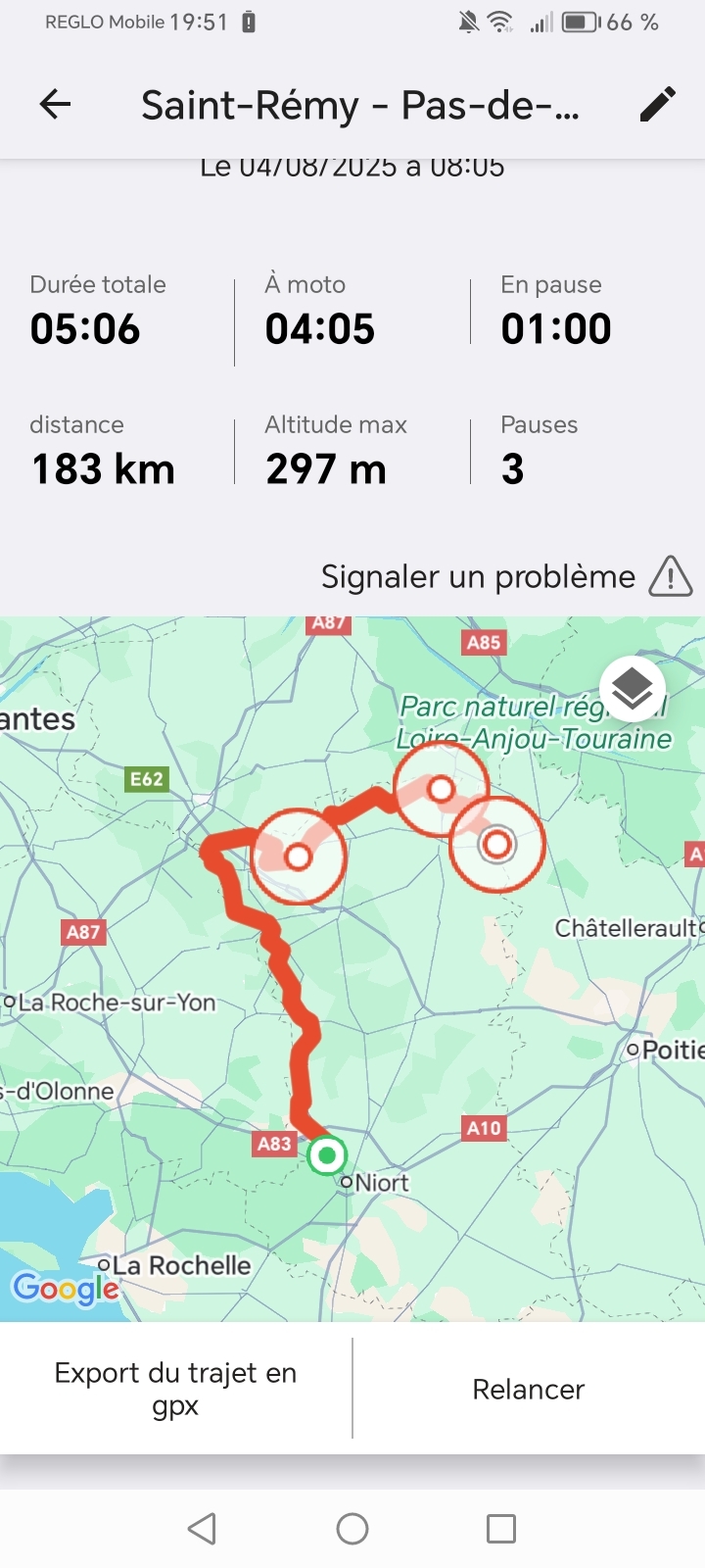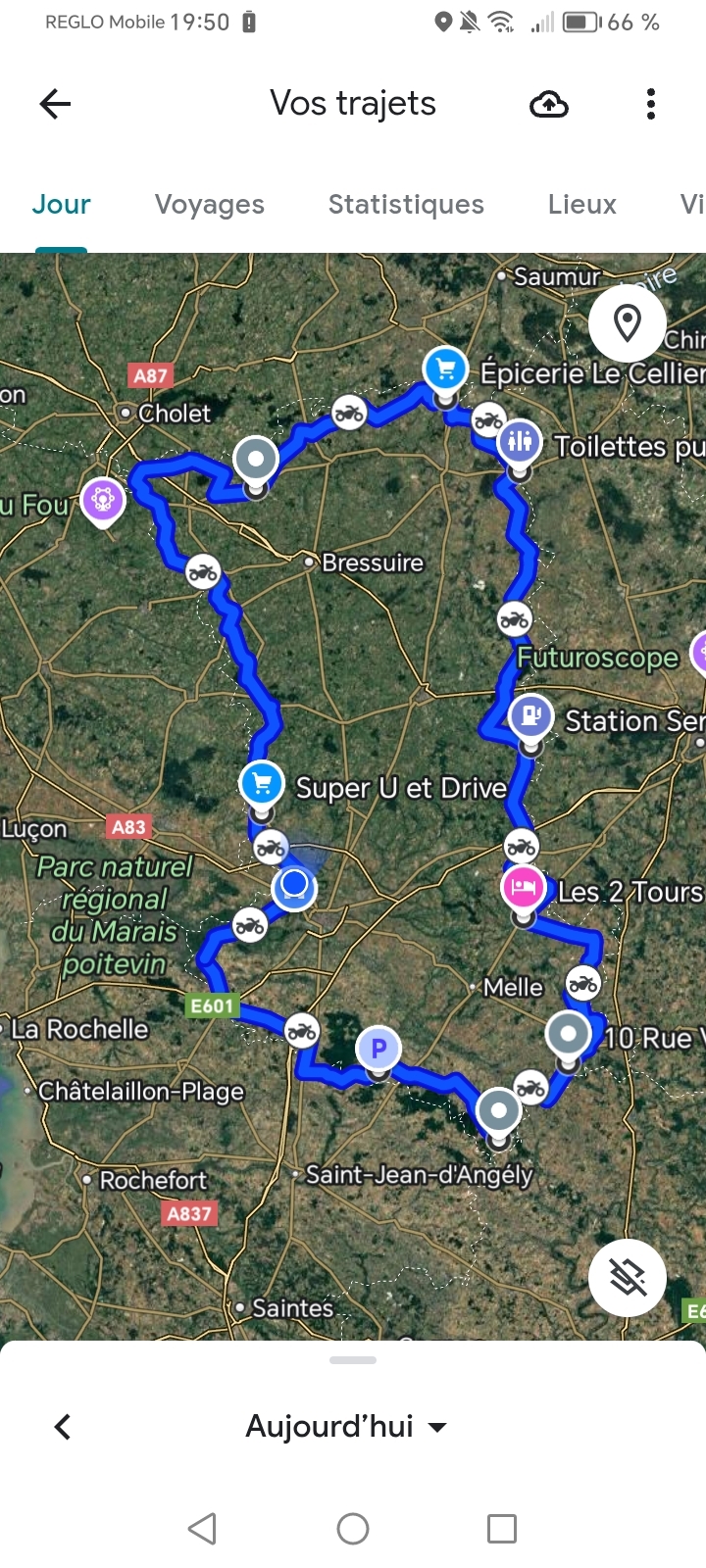 Voilà le reste de la balade côté est /sud est et Sud ouest des deux Sèvres malheureusement j'ai appuyé sur terminer le trajet au lieu de reprendre moi qui voulais faire un joli tracé de mon déplacement c'est raté heureusement que Google maps l'a enregistré