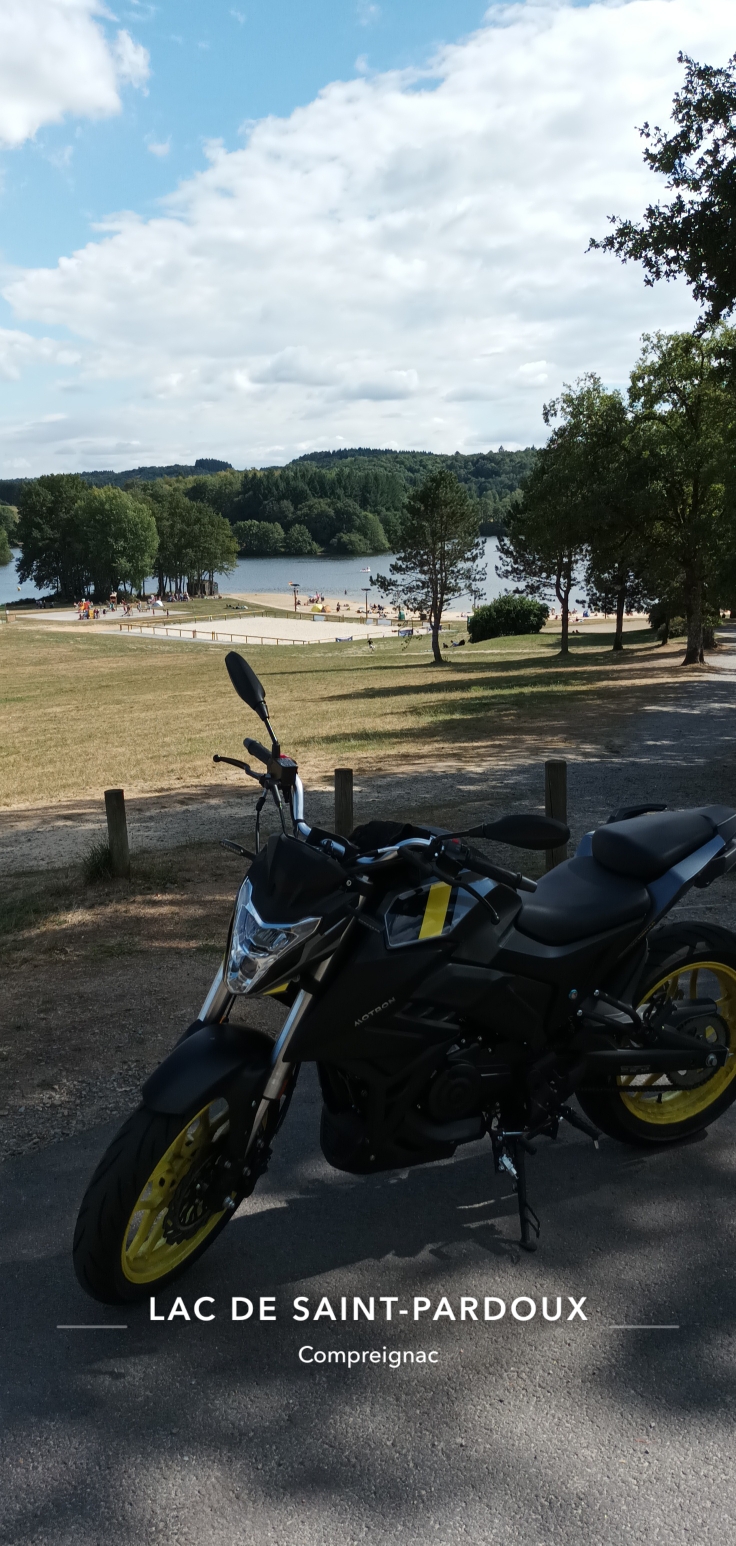 Petite balade au tour du Lac, la route est propre, sur le retour pas mal de virage entre Nantiat et Saint-Junien de quoi faire chauffer les gommes ! Première arrêt au Lac devant la base nautique qui propose diverses activités. Des snacks sur toutes les places pour se restaurer.