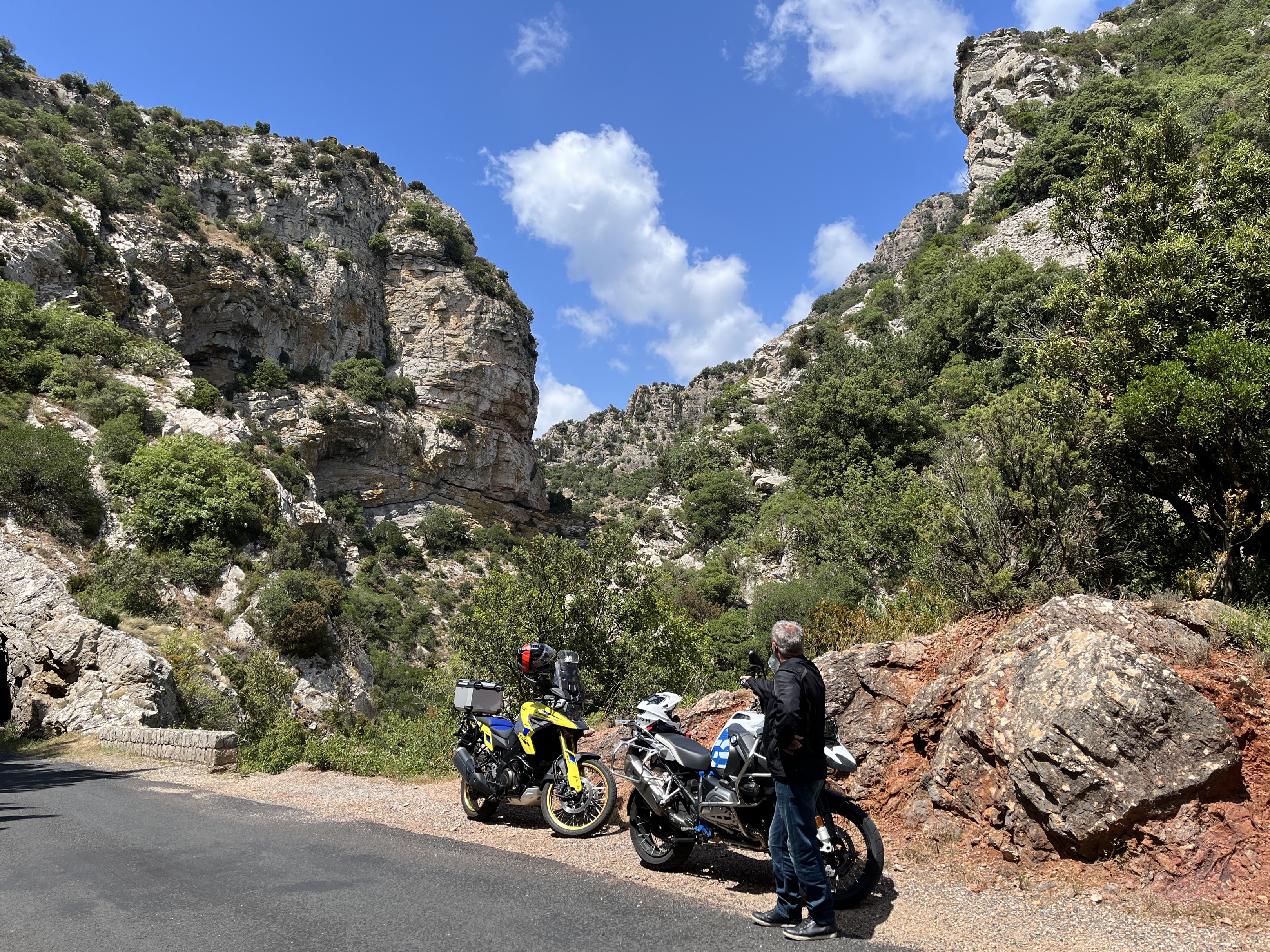 Des paysages sur la côte occitane, des routes viroleuses à souhait, de l’asphalte parfois un peu fripé mais la plupart du temps en bon état. Parfois étroites, car l’itinéraire traverse beaucoup de zones assez sauvages. Bref une boucle à parcourir en mode piano.