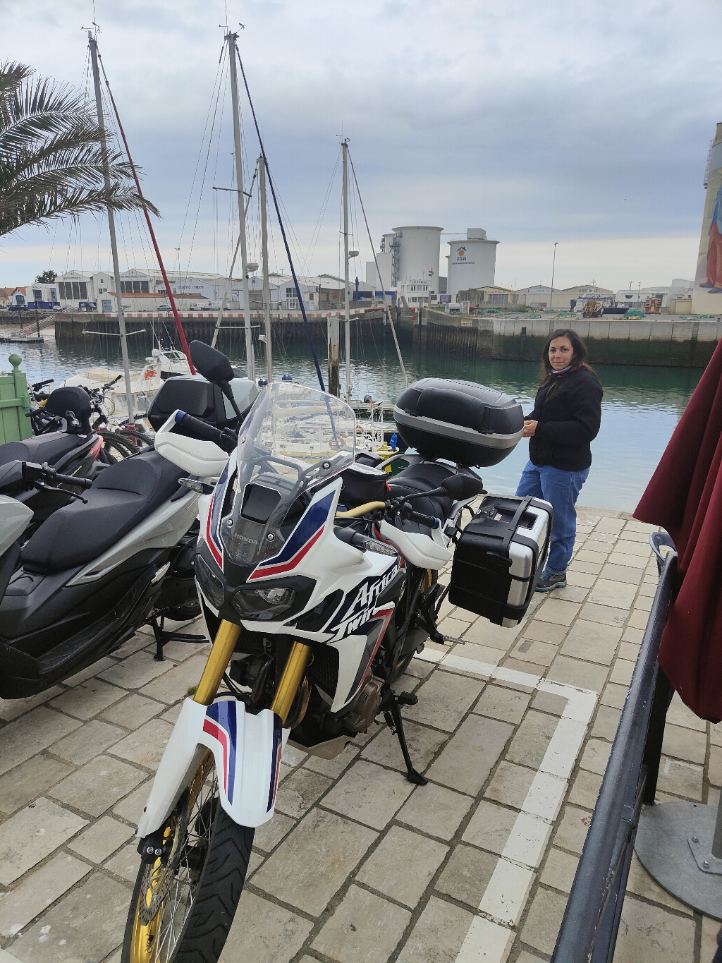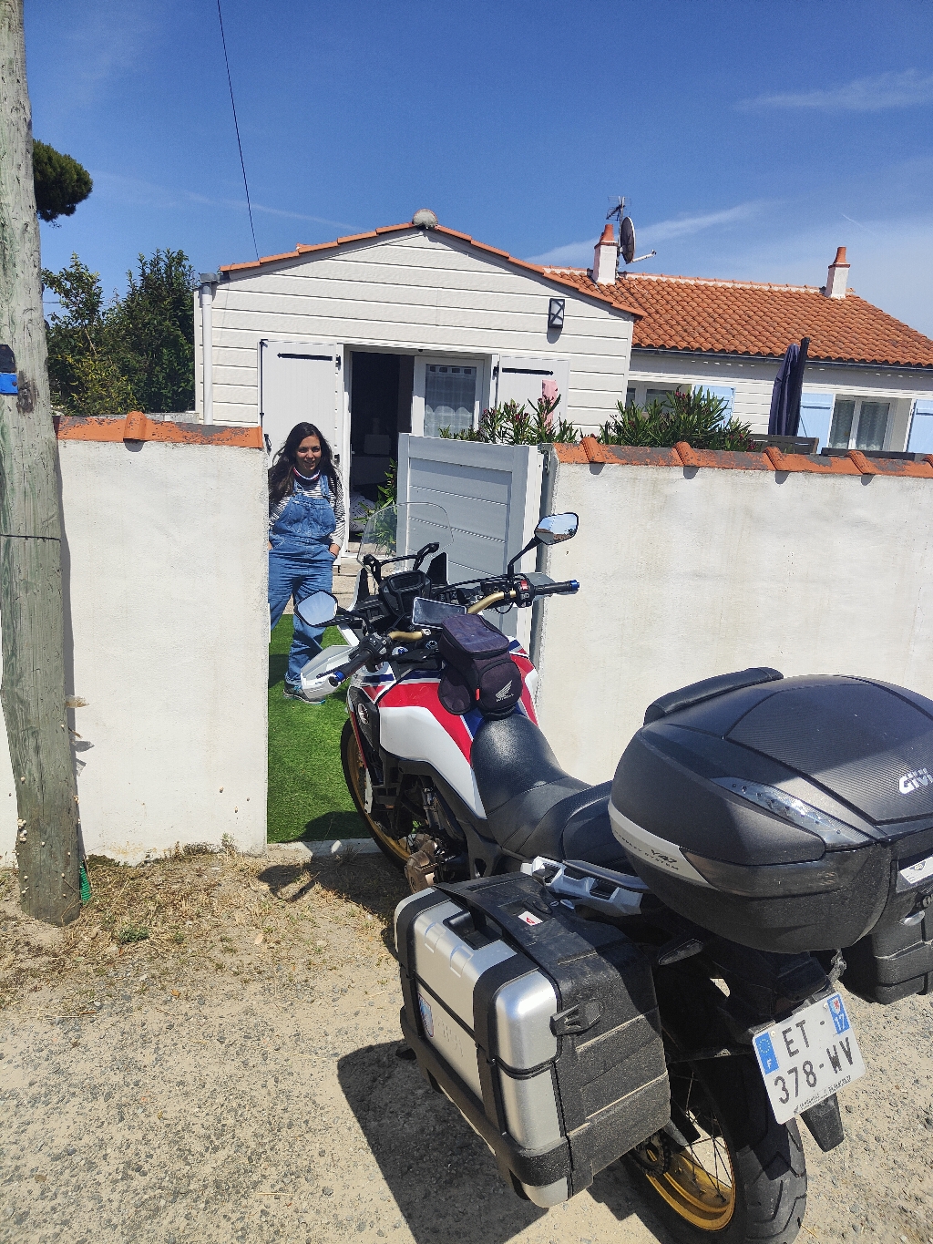 Trajet agréable sans grand axe, route côtière avec un bon repas sur le port au sable d'Olonne. Destination Noirmoutier ou une nuit "chez nous" à Barbatre des hôtes très gentils et agréables ils avaient même prévu la petite plaque pour la béquille de la moto... Le sable c'est bien mais c'est mou!