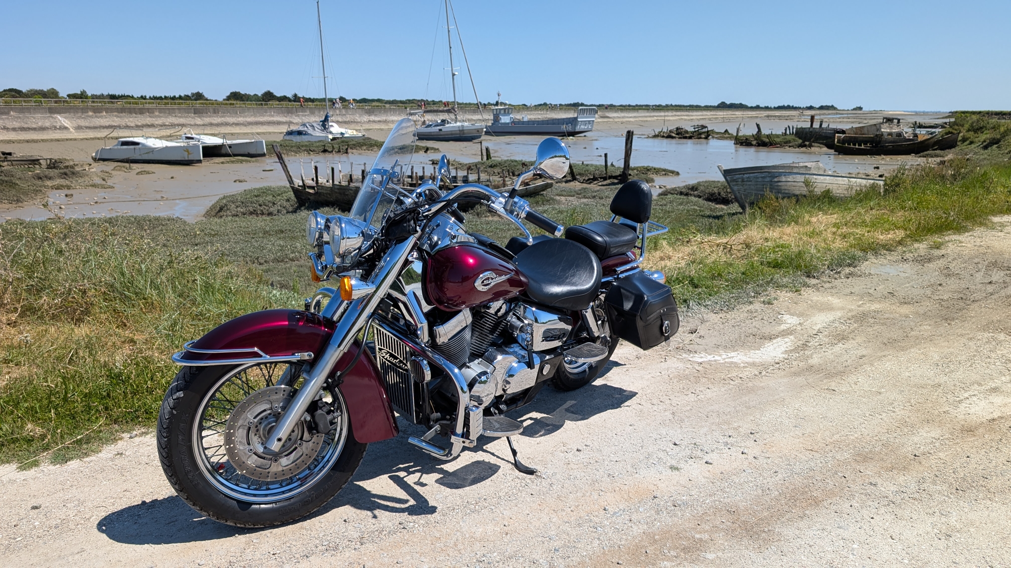 Le trajet de plus de 200 km aller-retour était très agréable. Pas de difficultés notoires. Nous nous sommes permis un petit écart pour aller visiter le magasin de moto greaser import à la barre de monts.