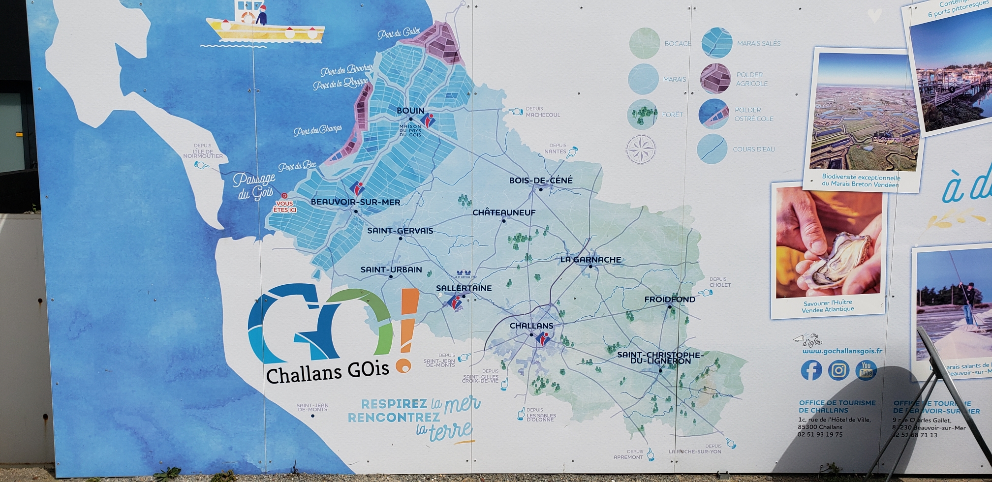 Ne pas manquer les salins, et la récolte du sel.t Ensuite passage du Gois uniquement à marée basse.Faire attention car la route peut être glissante et boueuse juste à la marée descendante. L'île de Noirmoutiers avec le Bois de la Chaise et le Port de L'Herbaudiere