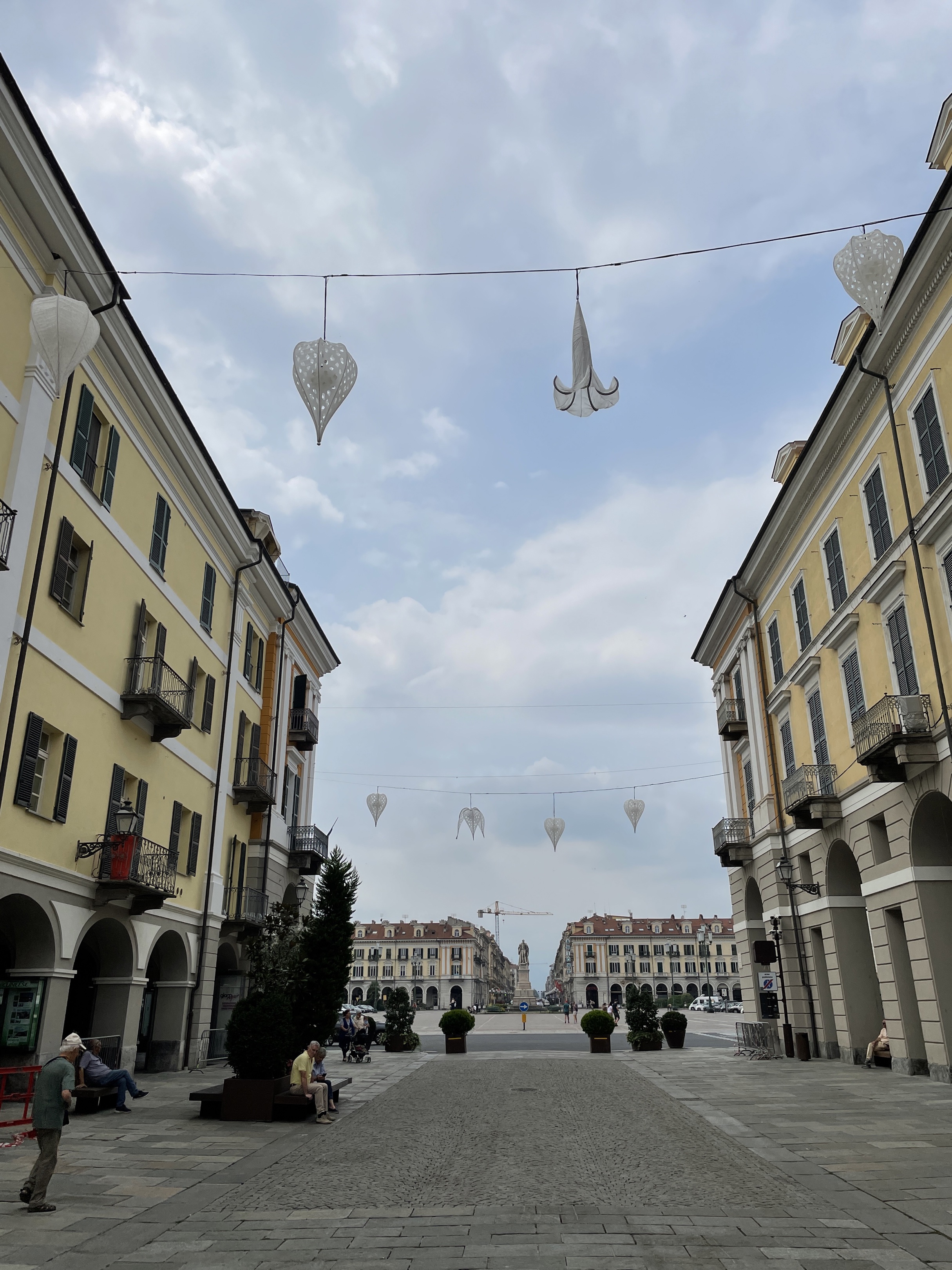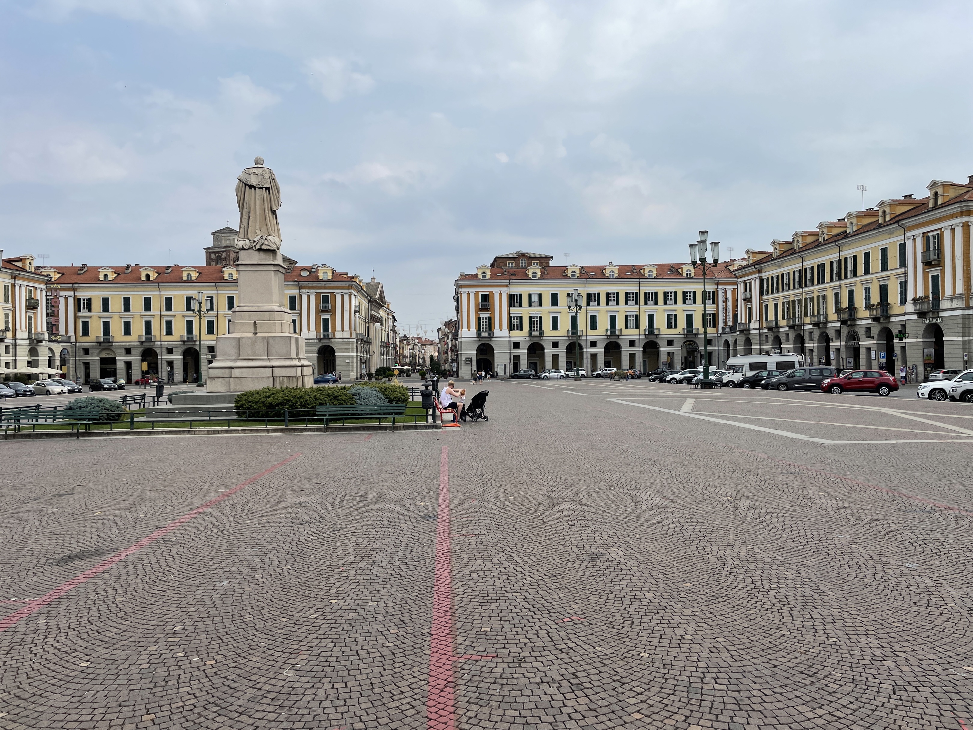 Après la descente la route vers Cuneo est tournante 😂 avec beaucoup de lignes continues, à vous de voir ce que vous en faites 😂. Arrivée sur la ville de Cuneo par le corso Francia et ensuite la place centrale et toutes ses arcades. Il y aura de quoi se restaurer et déguster spritz et pizzas le long des arcades aux belles maisons restaurées. Ne pas oublier de s’arrêter dans une gelateria pour manger une glace au prix défiant toute concurrence en France.