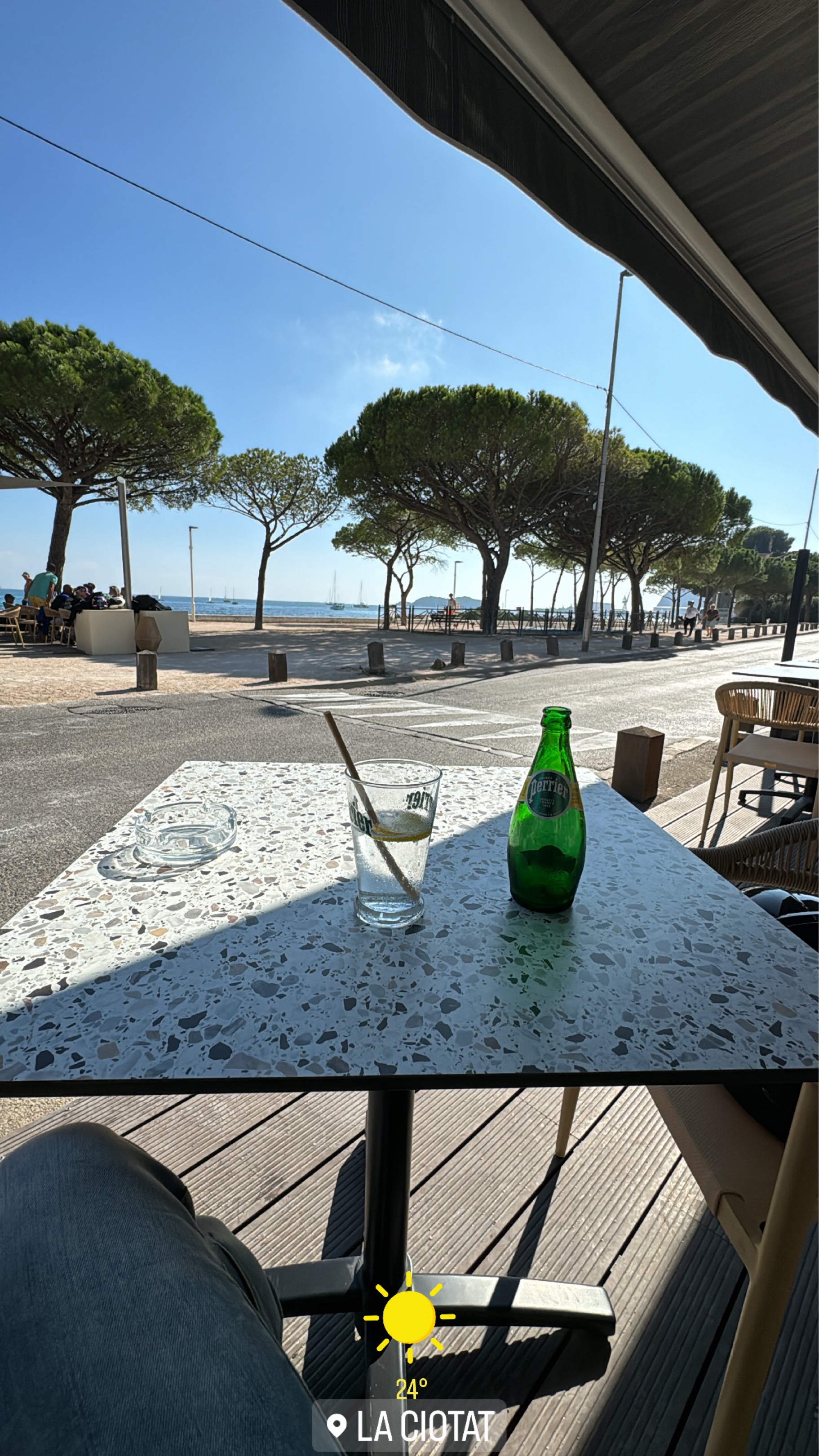 Arriver là bas, j’ai fait une pause sur le bord de mer et je me suis rafraîchit avec un petit Perrier tranche !