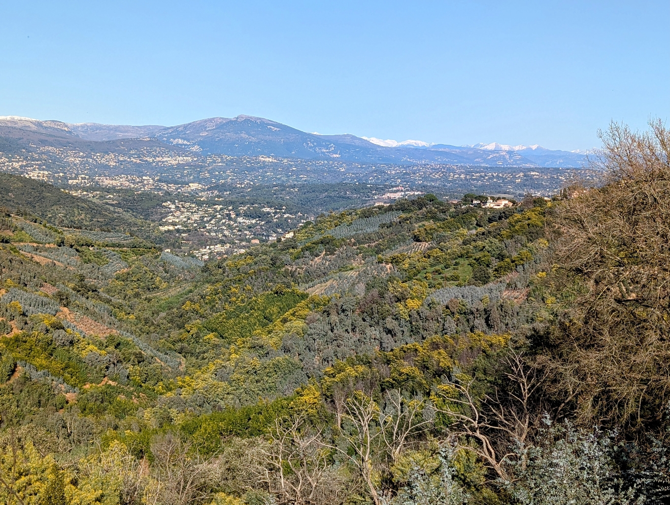 La route des mimosas part de Bormes les mimosas, jusqu'à Tanneron. Faites la dans ce sens, vous profiterez de points de vue magnifiques sur la Méditerranée, le massif de l'Estérel avec en fond les sommets des Alpes enneigées, et encore le magnifique massif de Tanneron.