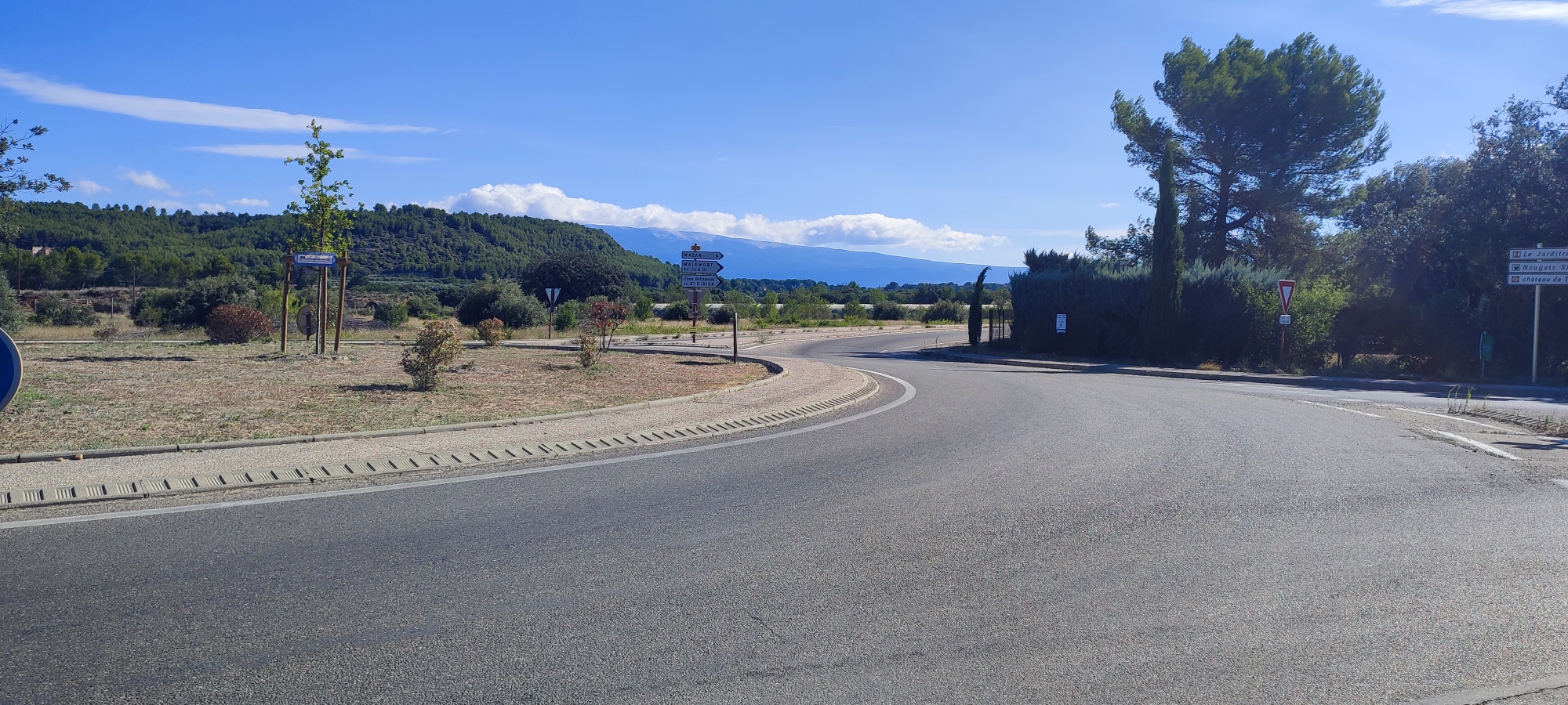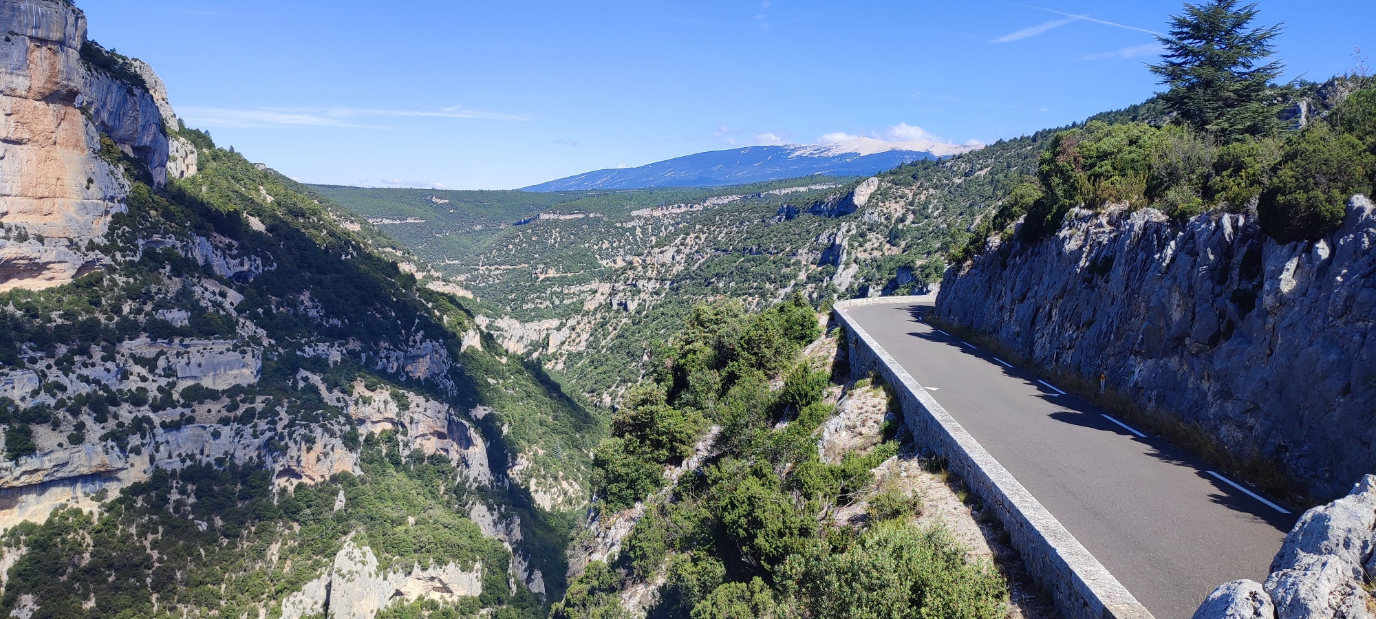 La qualité de la route est très bonne, à certains endroits le goudron est refait, le trajet est abrité du vent, les paysages sont magnifiques, la vue sur le Ventoux au pied de celui-ci est extraordinaire,les points de vue sont là pour les photos, dans les gorges,il faut s'arrêter prendre un café à Sault, et s'arrêter à Pernes-les-Fontaines qui est très animé comme ville