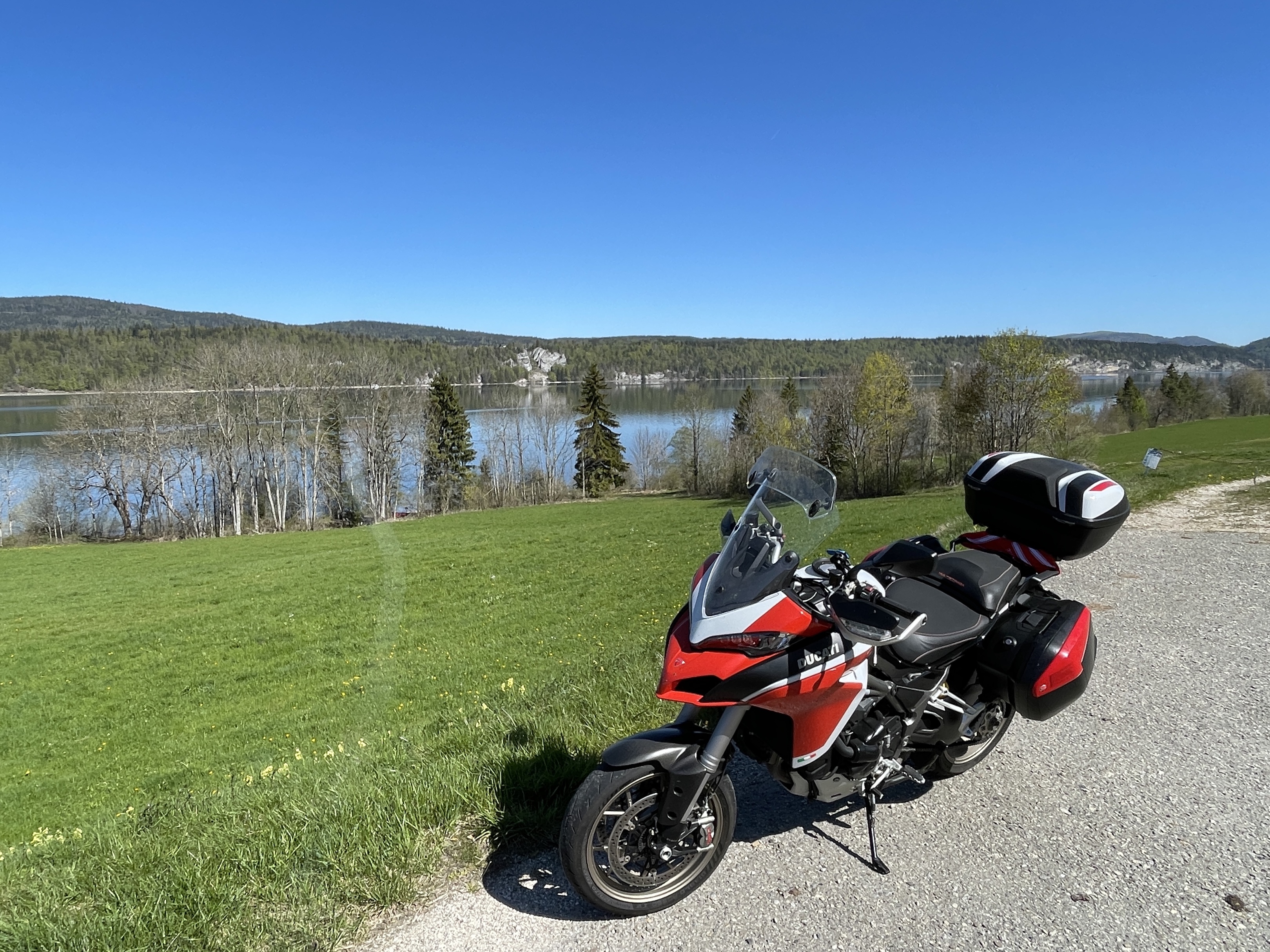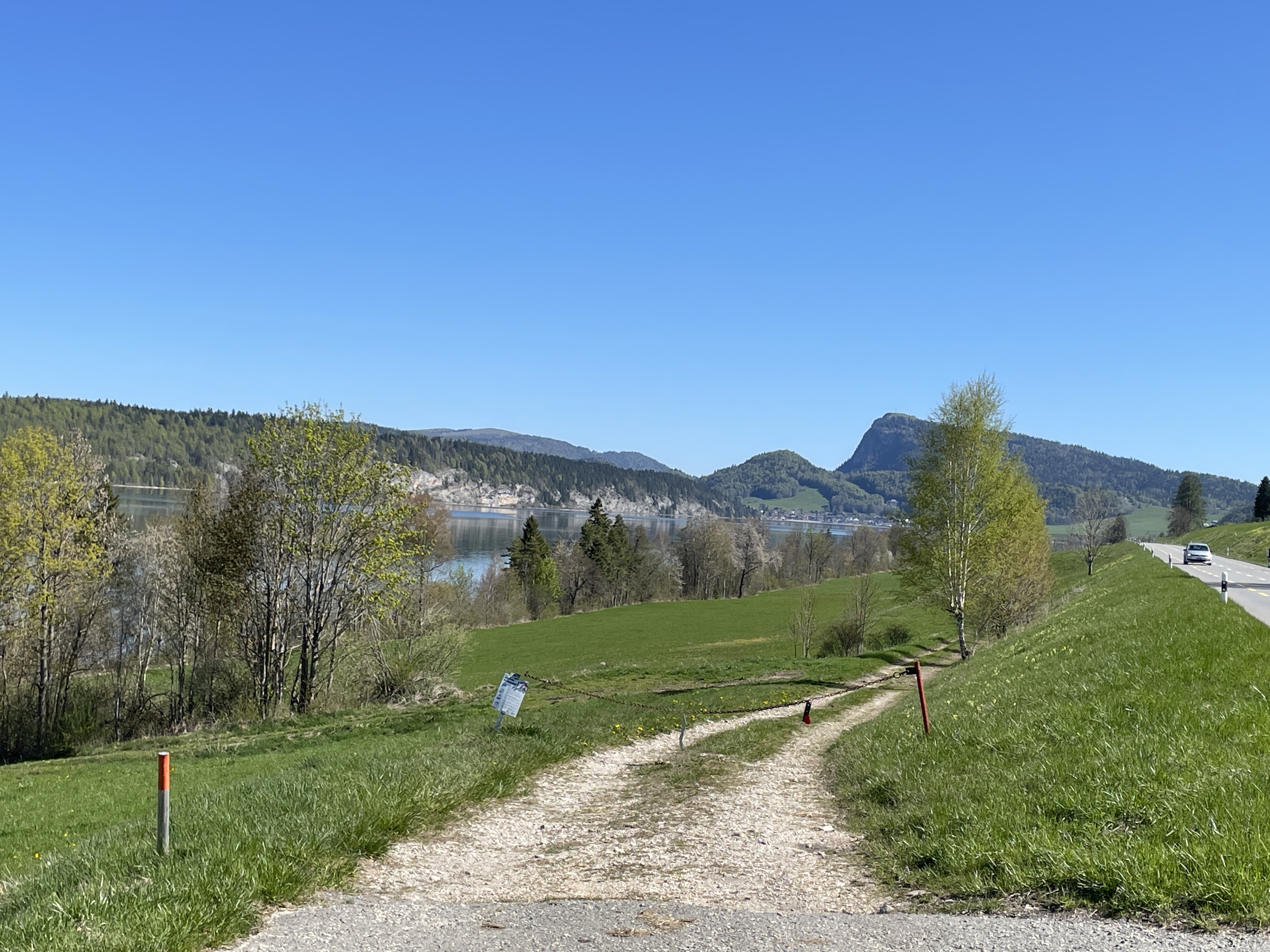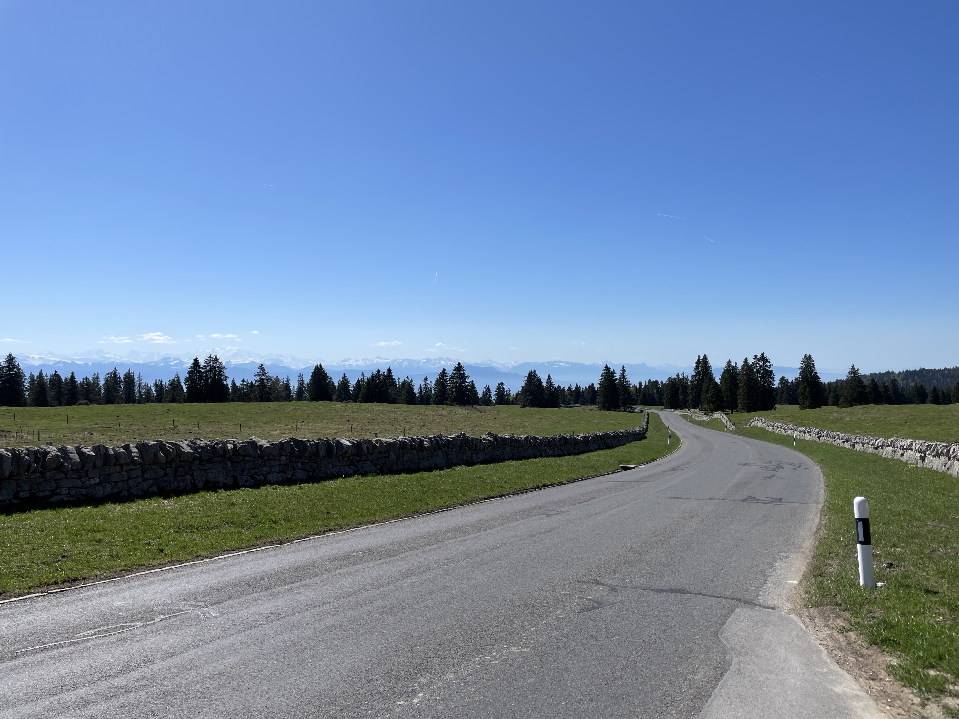 Genève, route du Léman, col du Mollendruz, vallée de joux, col du Marchairuz avec une halte pour le célèbre lard de Begnin et remontée sur la Givrine pour le pic-nique.