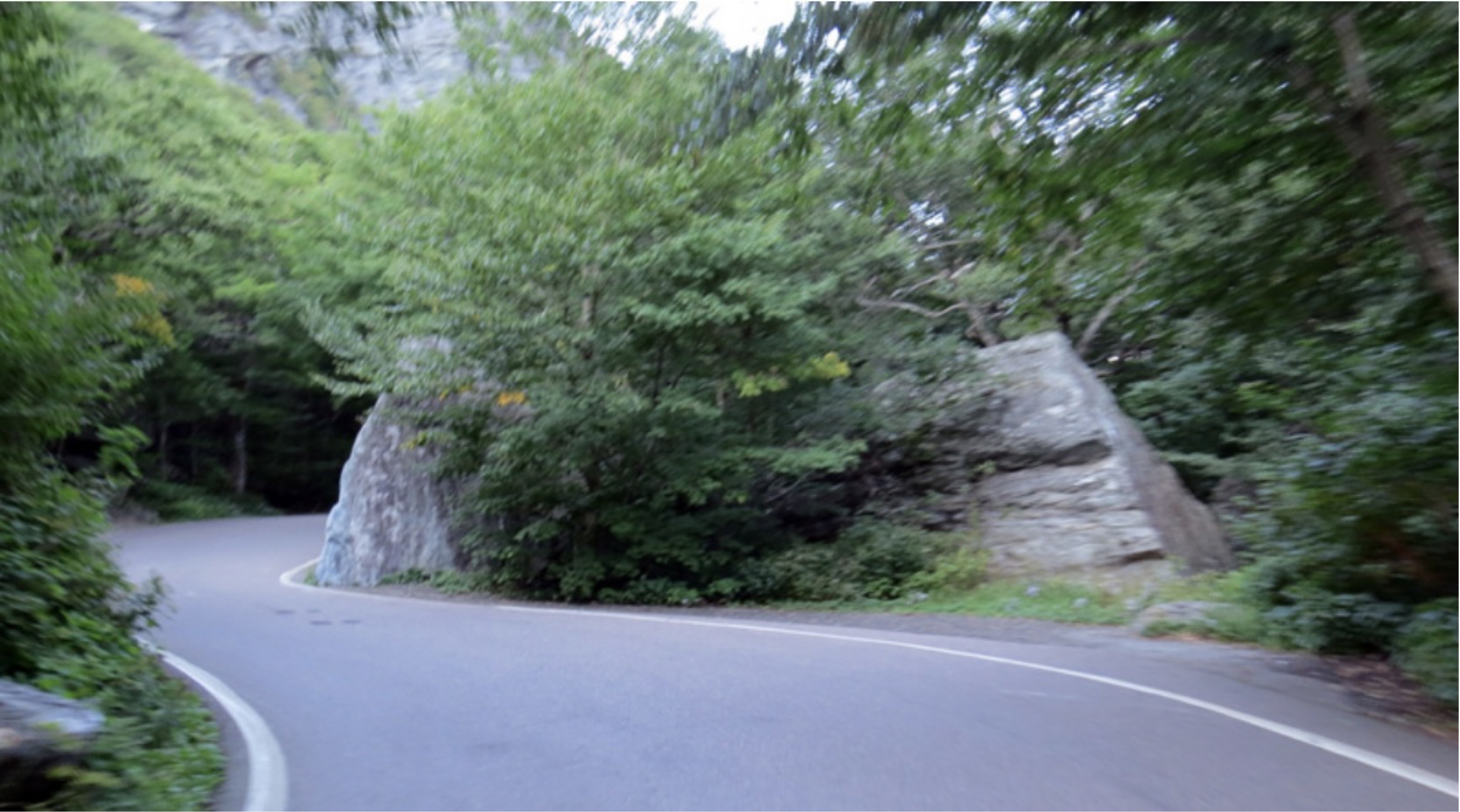 Juste après Stowe sur le chemin du retour. La route deviens une voie avec auto qui se croise le temps de contournée de grosse roche. Splendide. À refaire à l’automne !