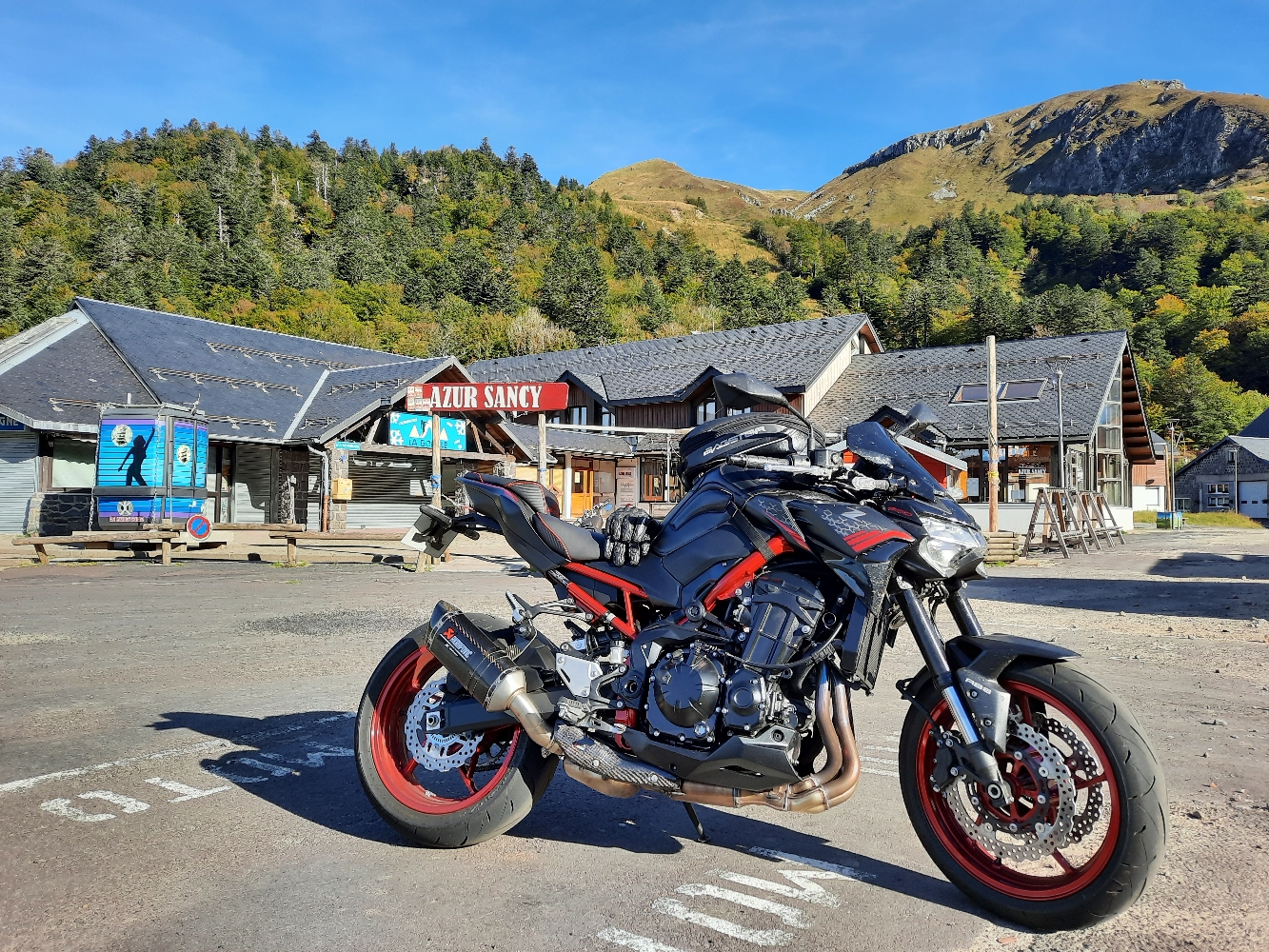 Départ par Lapalisse vers le Mayet de Montagne. Super route très roulante dans les collines puis traversée de la montagne bourbonnaise par les petites routes perdues très sinueuses. Puis la célèbre route de Thiers et grandes départementales bien larges pour enrouler pépère jusqu'à Vic le Conte. Ensuite, super route de la montée vers Besse par Chempeix. Plus ça monte, plus ça se resserre. Idéal pour dégager les 'poils' des pneus neufs sans exploser le compteur. Après SuperBesse, tour du Sancy par le droite ou la gauche sur des routes de montagne aux points de vue splendides pour redescendre sur Le Mont Dore et retour par le lac de Guéry, Orcival, Pontgibaud pour le plaisir des virolos plus rapides. Enfin, redescende par les petites routes des Combrailles vers Ebreuil, Saint-Pourçain-sur-Sioule.