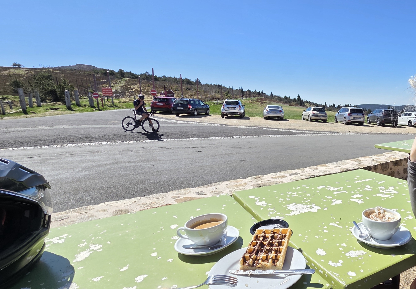 Balade dans les collines du Livradois-Forez, l'allée sur des petites routes de montages entre forêt et prairie jusqu'à Issoire. Une petite pose au relais moto du col du Beal est recommandé.