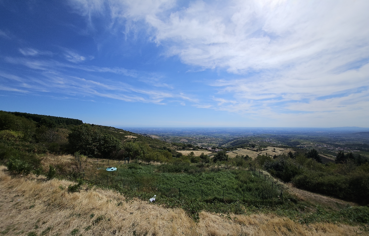 Terrasses du Beaujolais avec son panorama jusqu'à Mont-Blanc à Chiroubles