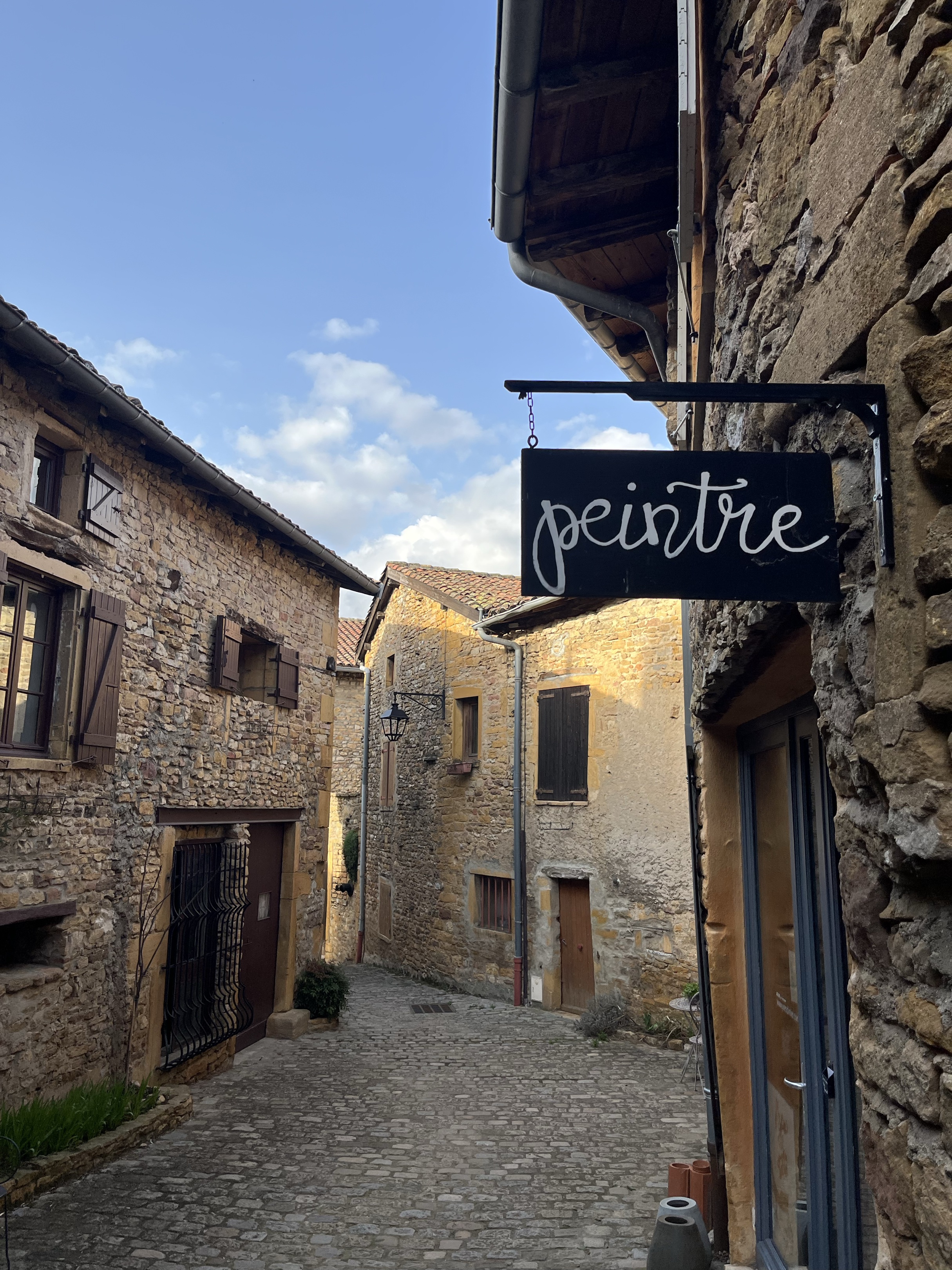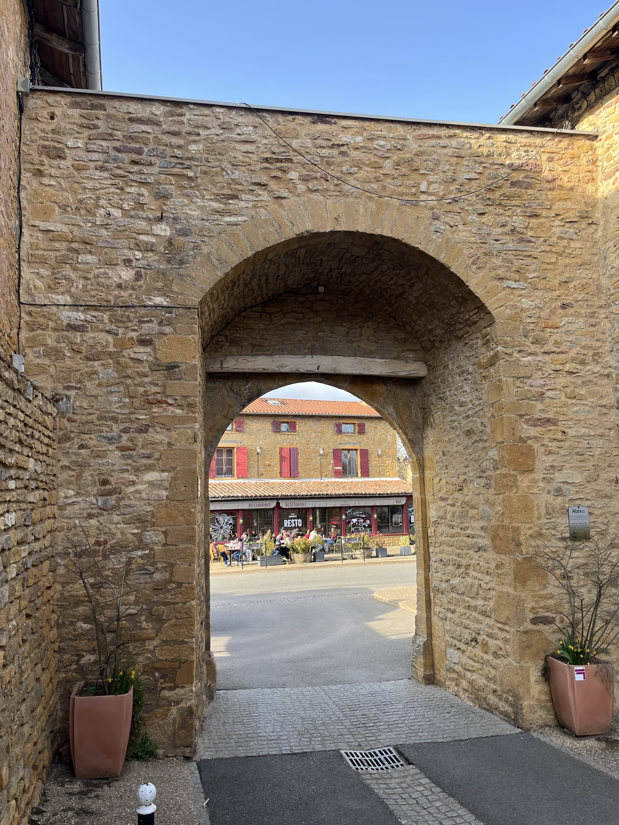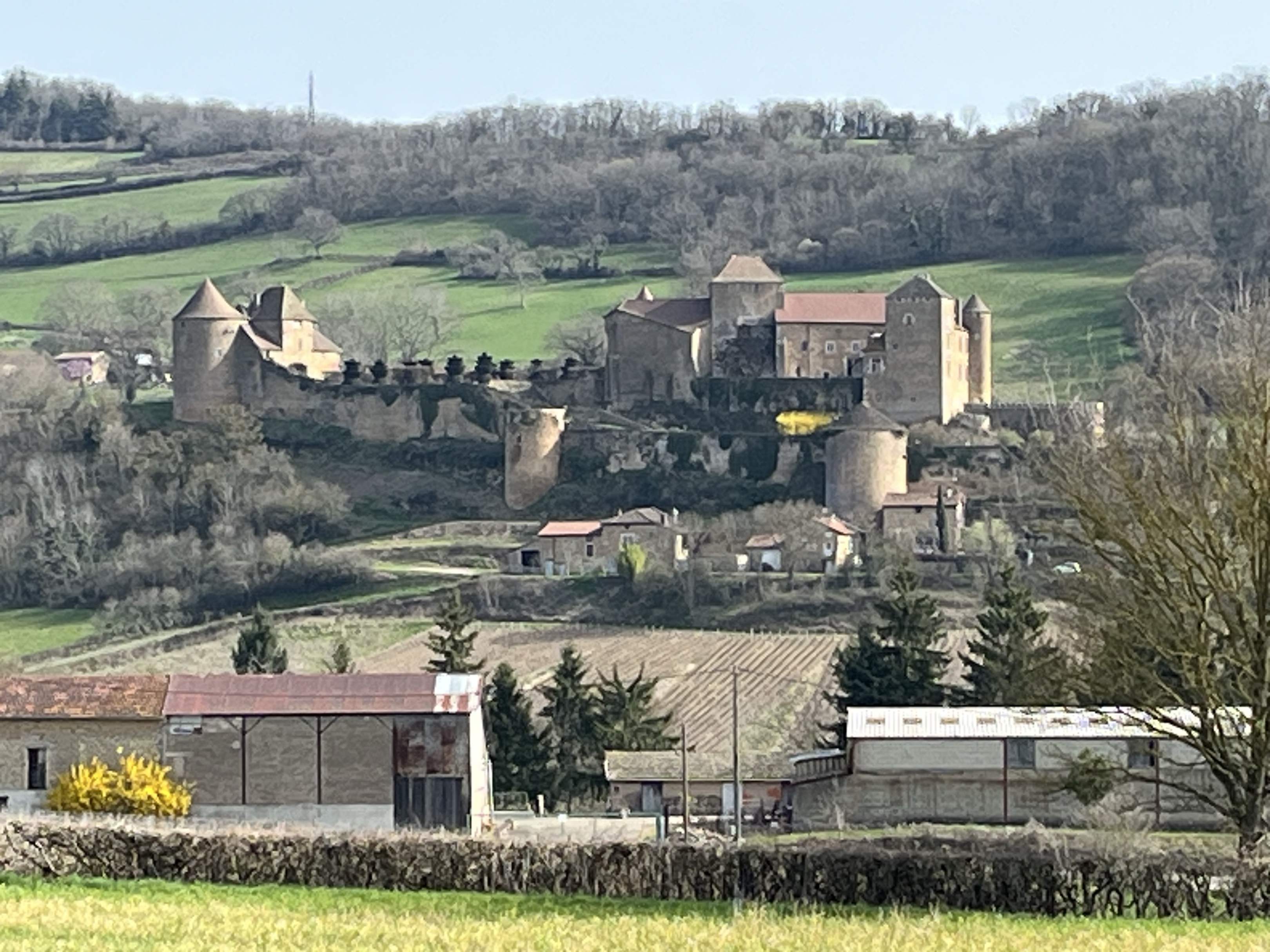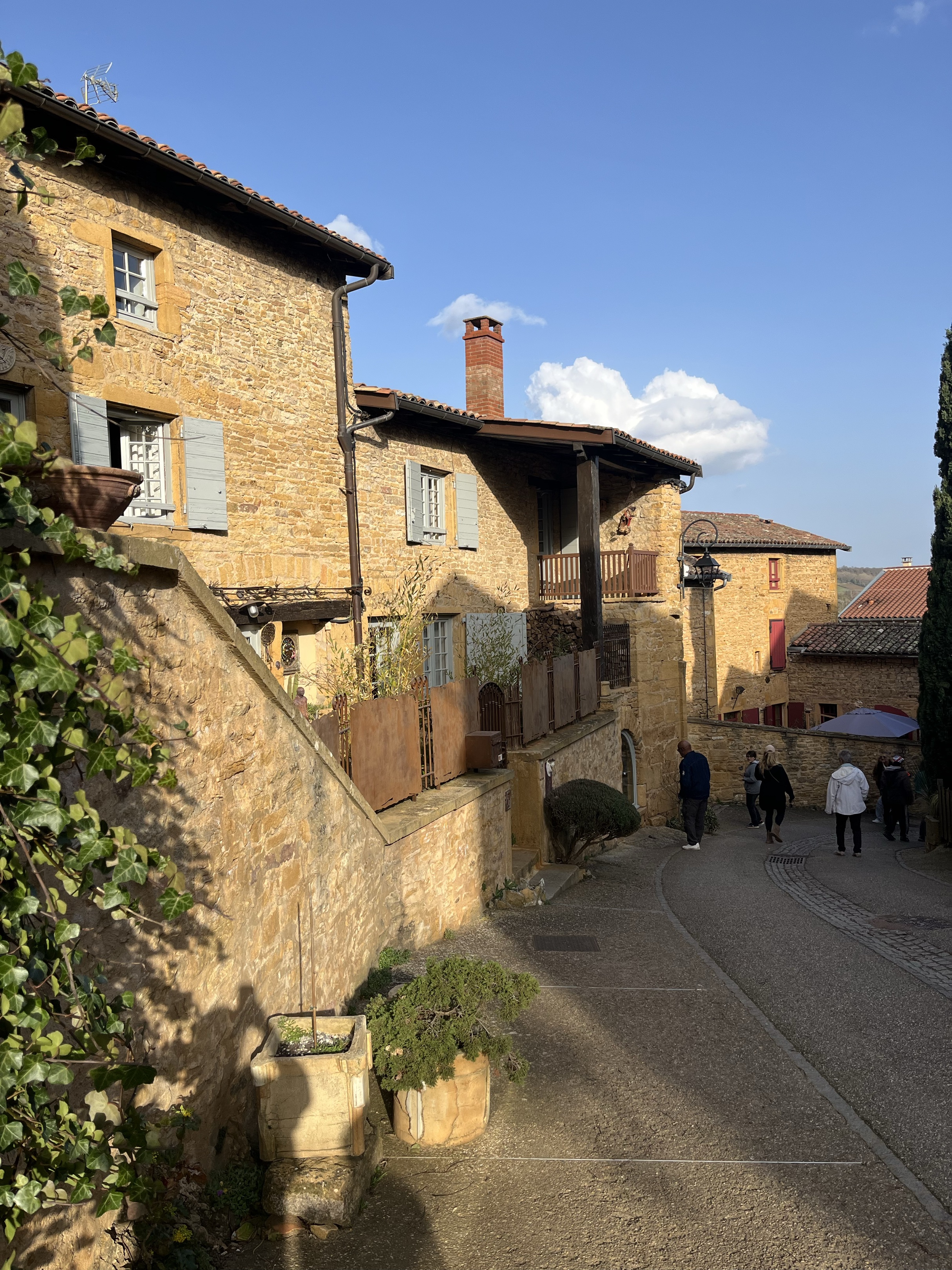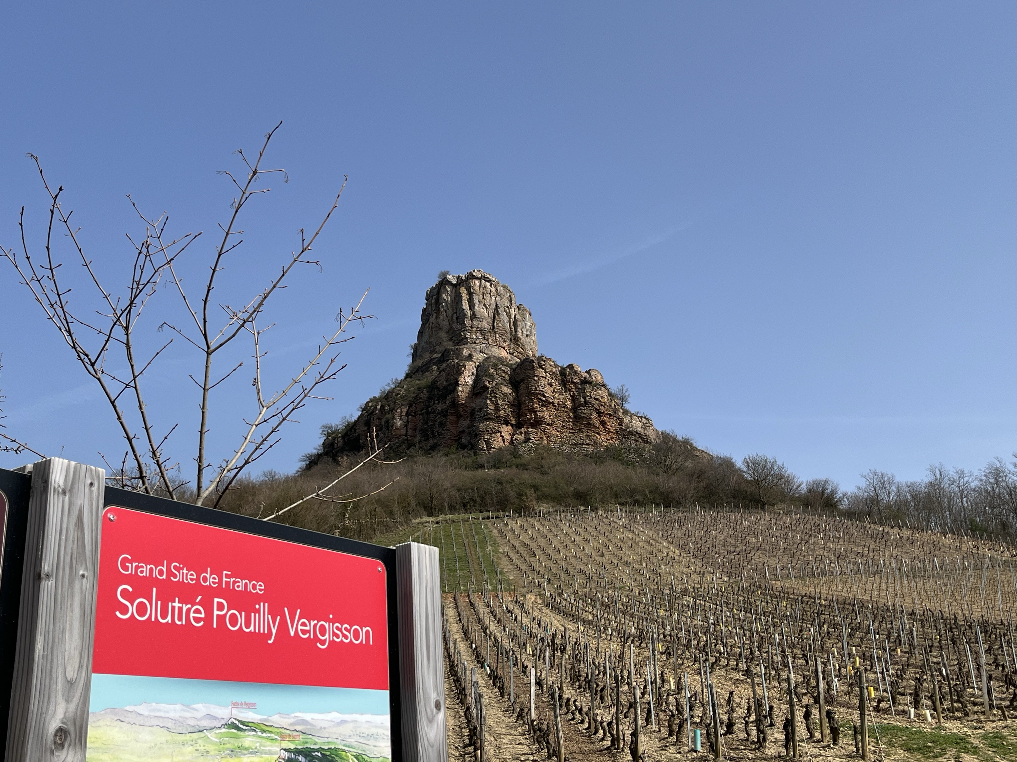 Route au milieu des vignes et des beaux villages. Arrêt impératif à la roche de Solutré et dans le village de Oingt.