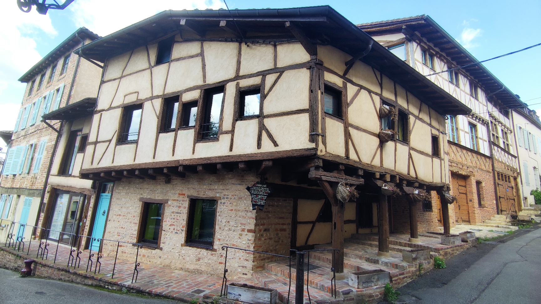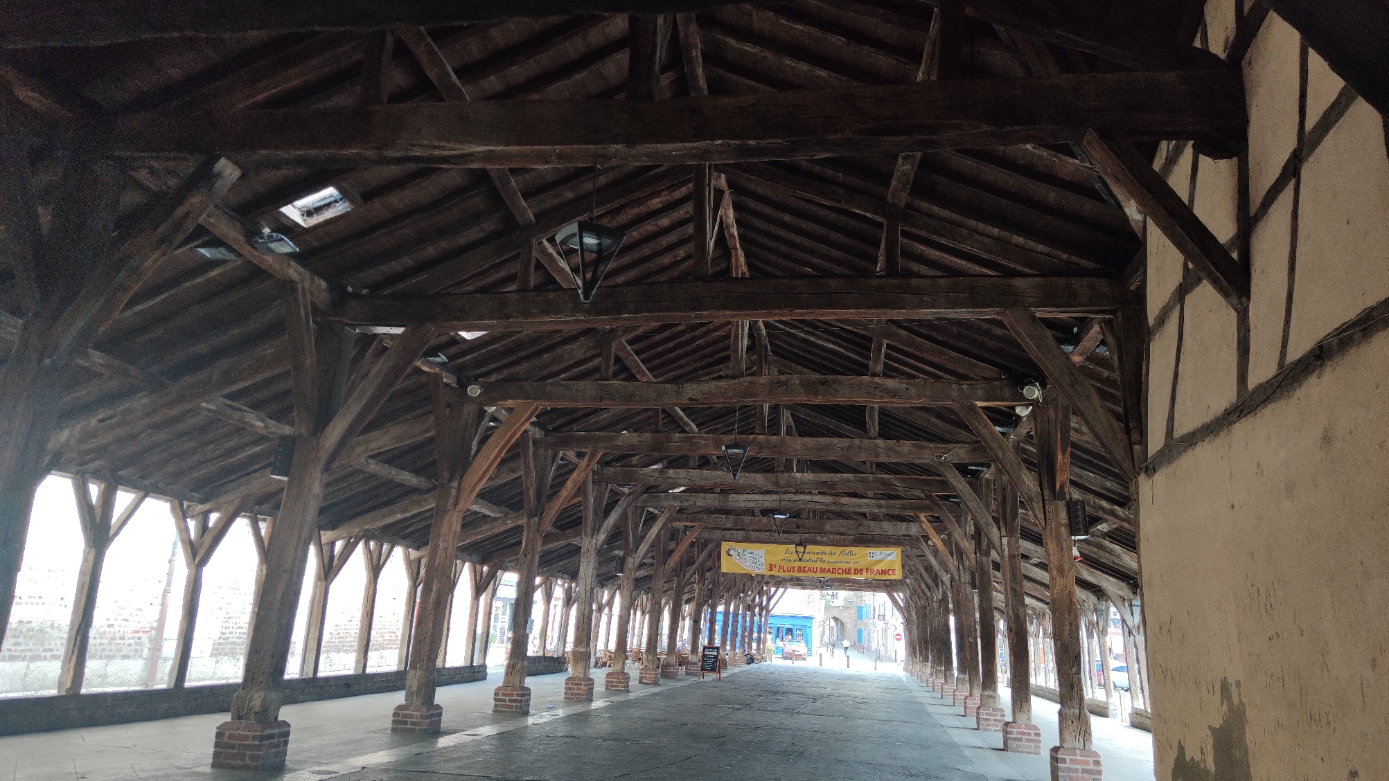 Très joli village, ça vaut le coup de poser la béquille et de s'y balader ! Le village est très ancien, beaucoup de maisons à pans de bois du 16eme siècle et une superbe halle couverte datant de Louis 14 . Les routes y accédant sont très roulantes et agréables avec quelques beaux virages et des lignes droites bien sympathiques.