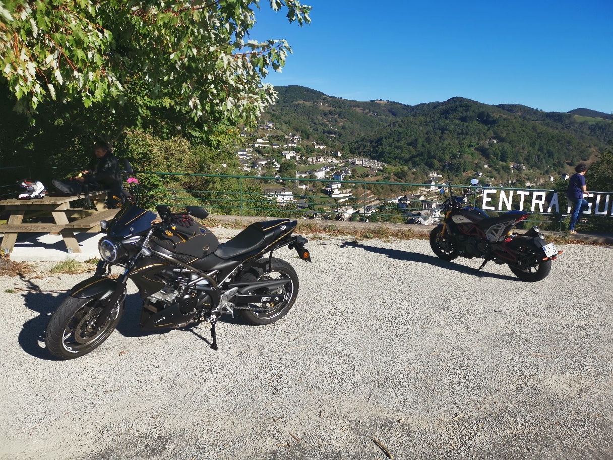 Nous avons croisé bcp plus de motards aujourd'hui que lors de nos sorties estivales. 24/27 °c le 30 Septembre . Estaing est un village sublime en particulier. :Entre Espalion et Entraygues :De la roche qui plonge dans la rivière... De la verdure, des arbres qui vous font un tunnel, des sapins noirs en s arrêtant sur des prés encore bien verts. Des châteaux à la pointe d un rocher avec de magnifiques maisonnettes tout autour... Et cette route sinueuse... Après on domine, la route est plus droite, on profite de la vue qui porte sur l'horizon. On arrive à Montsalvy. Prévoir une journée...
