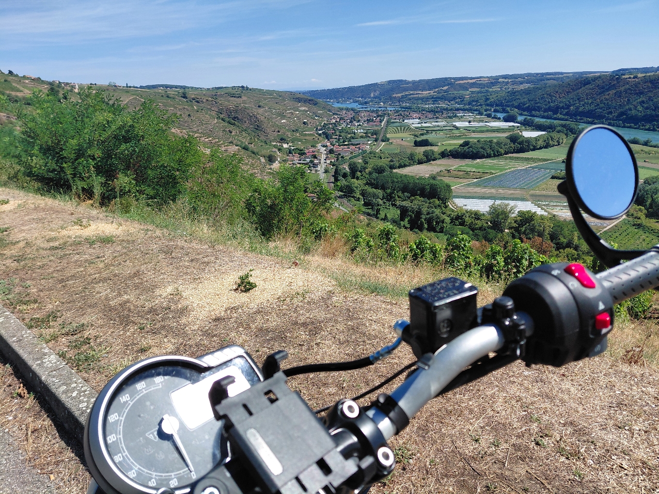 Depuis Vienne et son histoire gallo romaine, ce petit circuit fait une boucle dans 4 départements en moins de 2h sans pause. Une partie Isère Drôme au milieu des arbres fruitiers, un passage par le Lac du Ternay en Ardèche, par Malleval (village médiéval) dans le parc du Pilat dans la Loire, et les vignes de Condrieu et Côte Rôtie...