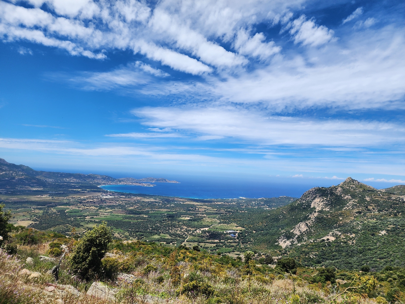 Sur le col de Salvi : arrêt incontournable ! Une vue splendide sur la baie de Calvi, un petit muret sur le bord de la route pour admirer le paysage où faire une petite sieste (peu de passage), et sentir les arômes du maquis.