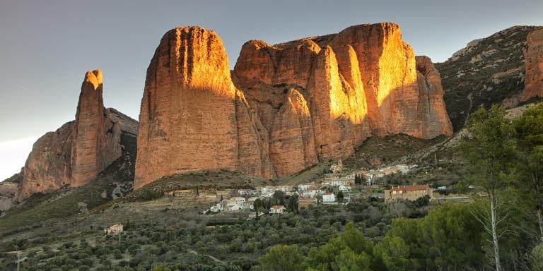 Au depart de Pau, à travers les pyrénées franco espagnoles, on peut se restaurer à Murello de Gallego face au Mallos de Riglos.