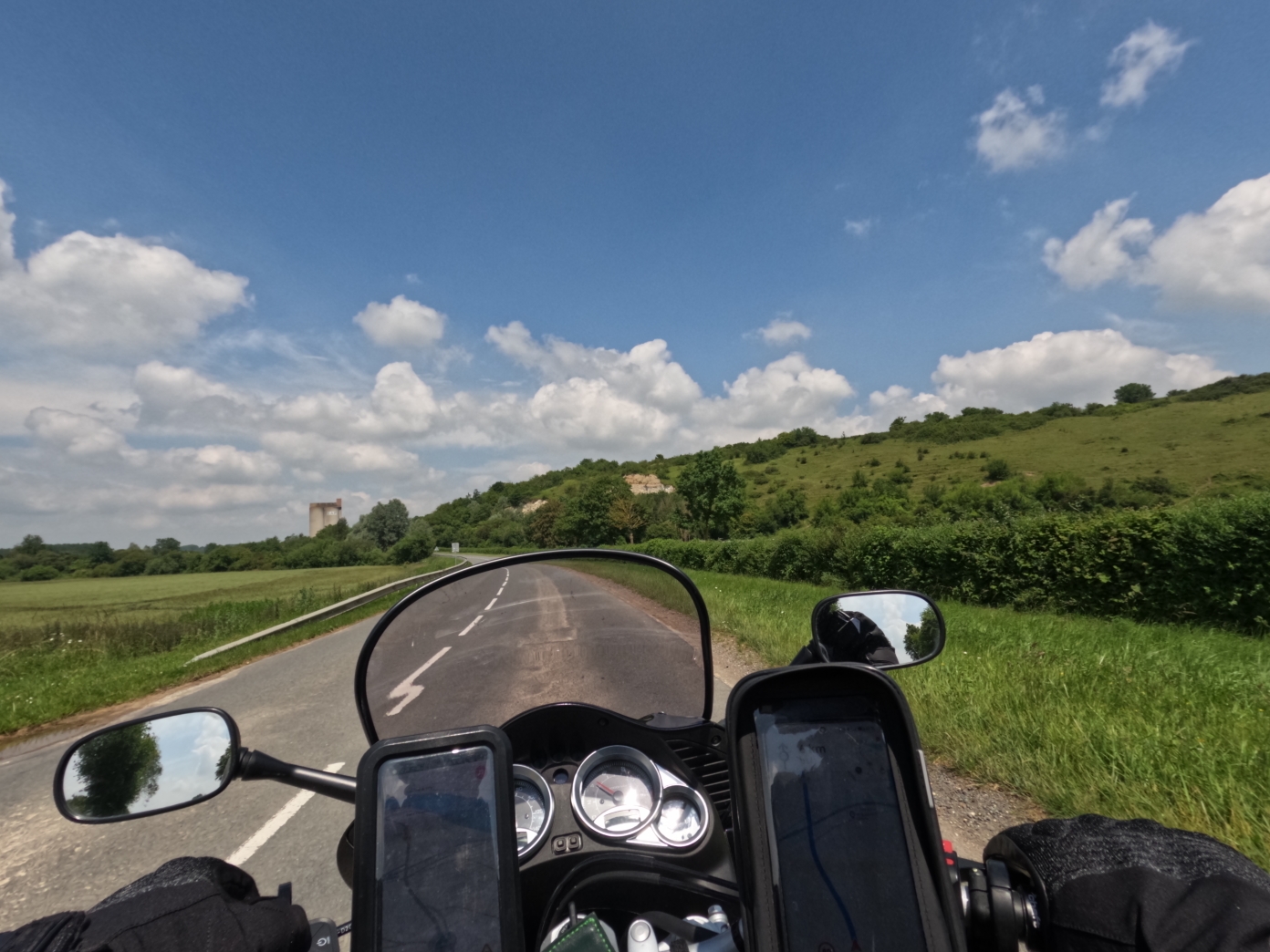 Mon épouse m'accompagne en voiture came permet de rester relativement léger sur la moto !