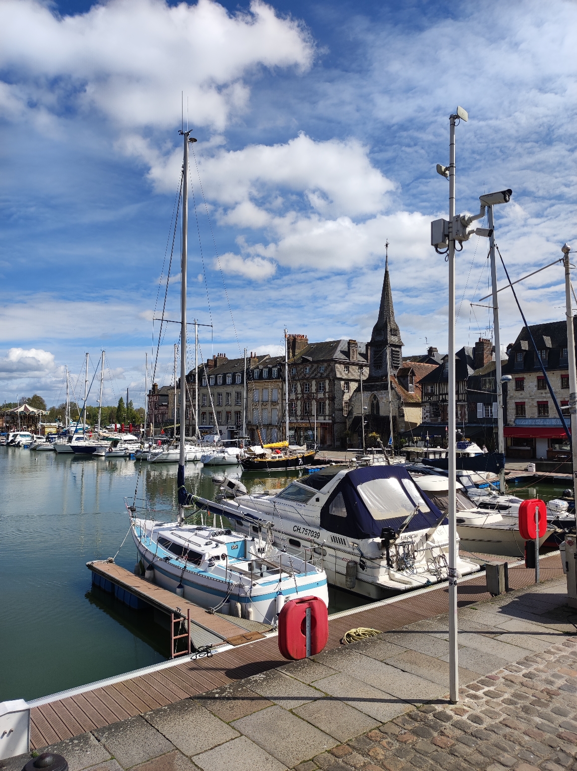 L'arrivée sur Honfleur permet de voir le pont de Tancarville et le pont de Normandie qui est gratuit pour les motards