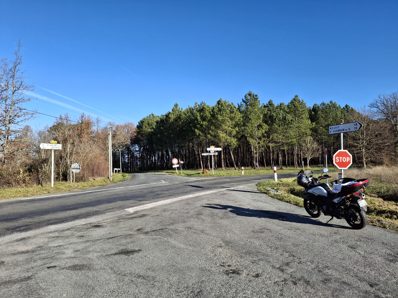 Profiter de cette magnifique journée ensoleillée de Décembre sans oublier l'accoutrement multicouche et les poignées chauffantes pour ne pas craindre le froid et partir à 10h pour laisser le temps aux endroits gelés de se réchauffer. C'est donc parti pour 6h de moto safe pour profiter des départementales à flancs de coteaux avec points de vue magique à chaque virage. L'air frais sur le visage, les silhouettes des vaches sur une mer de rosée. Très belle balade avant l'hivernage.