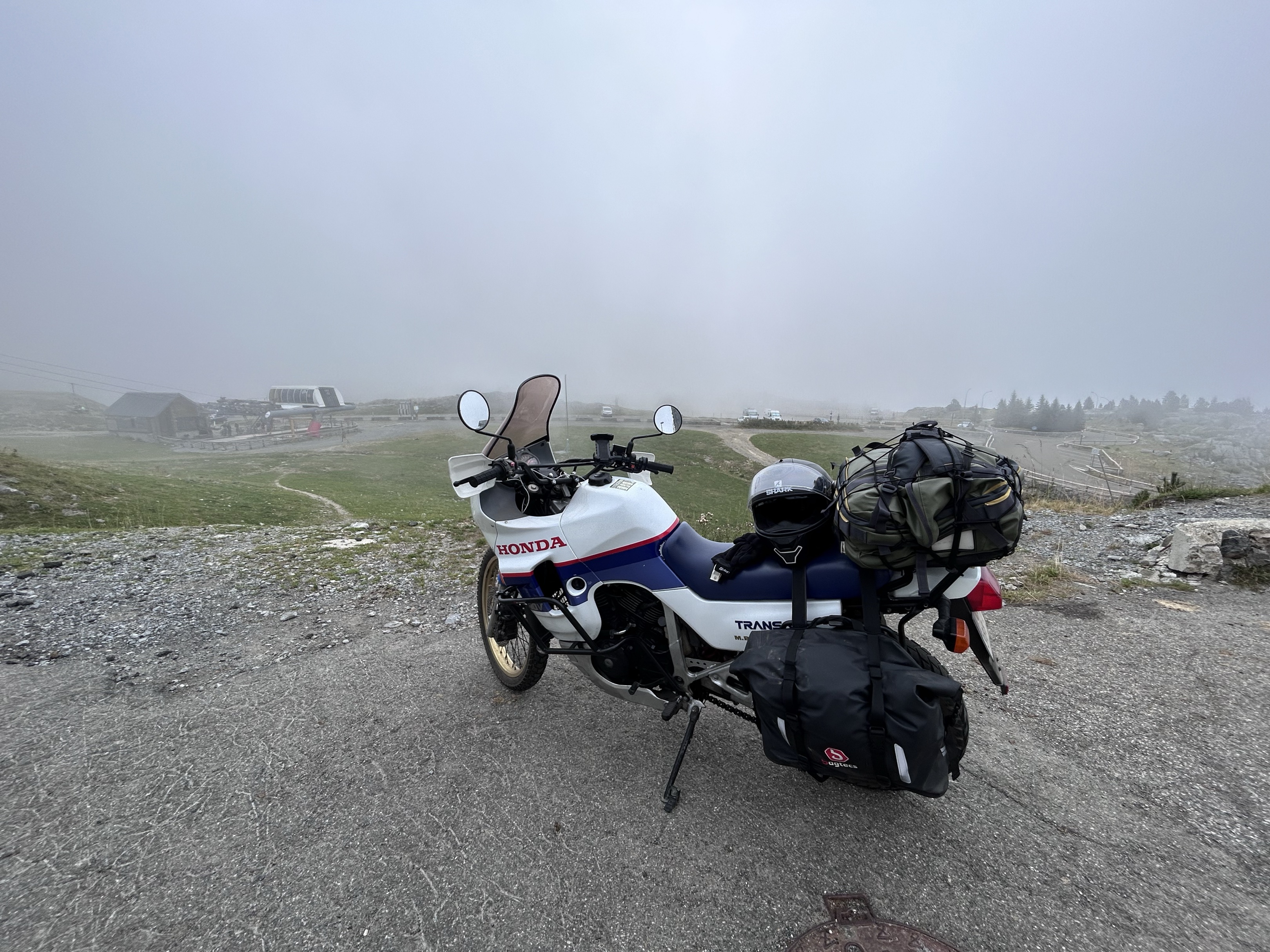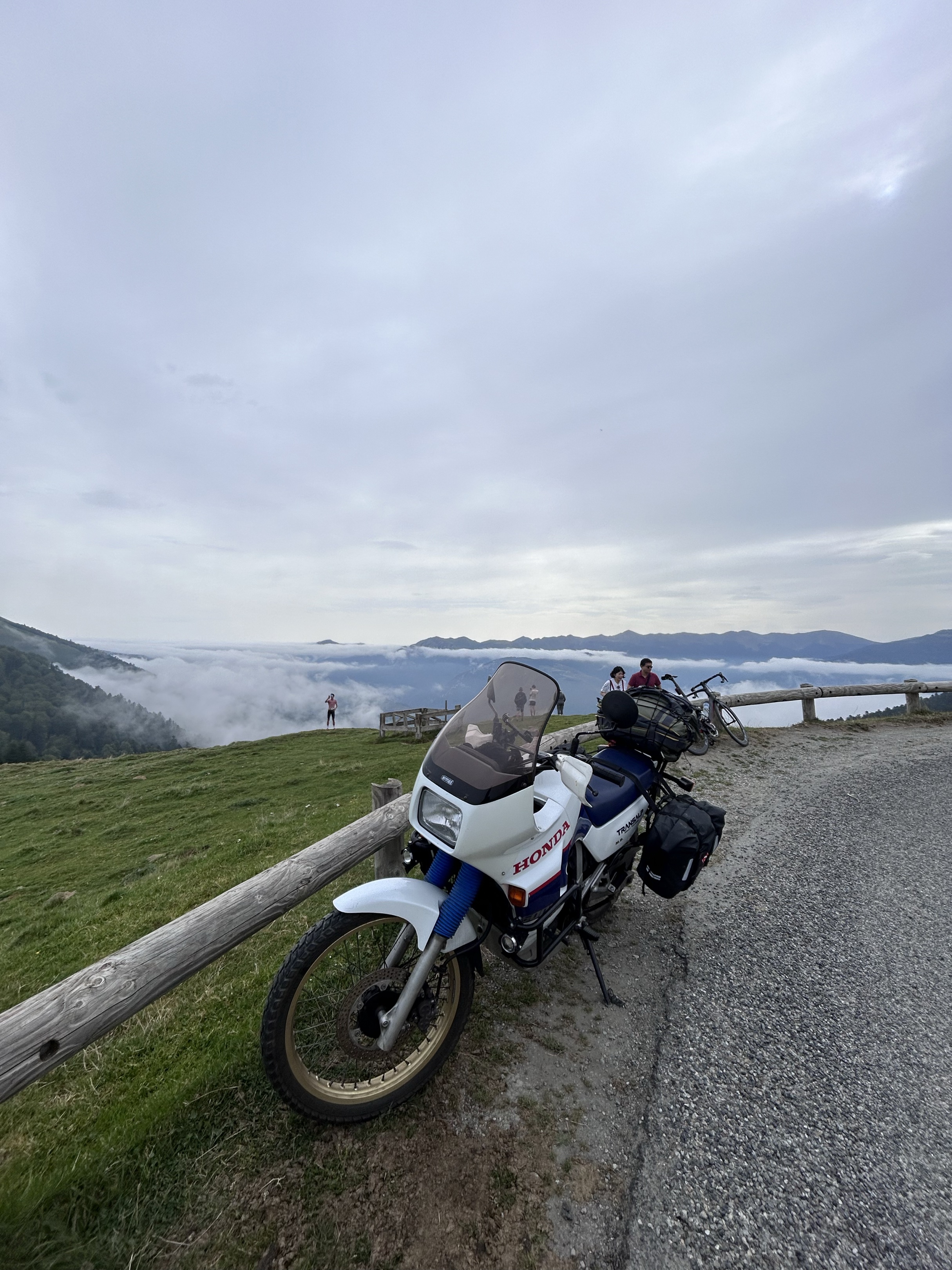 Là, le col du Soulor et d'Aubisque s'offre à nous avec des somptueuses vues en particulier pour le col d'Aubisque. Laruns, Escot, Acous... Ça y est, nous sommes bien dans le pays basque d'ailleurs le temps changent nous le fait vite comprendre, nous arrivons en haut de La Pierre St-Martin plein dans le nuage et ce soir c'est camping au village de Sainte-Engrâce (une bonne douche s'impose...) et déjà la fin du périple se fait sentir. Demain dernière étape.