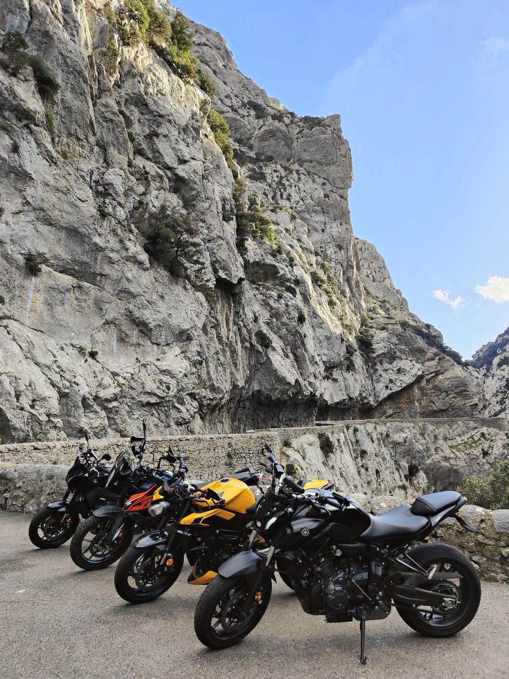 Route en bon état (goudron en bon état, quelques passages enrobés tout neuf, souvent avec deux voies dessinés au sol)