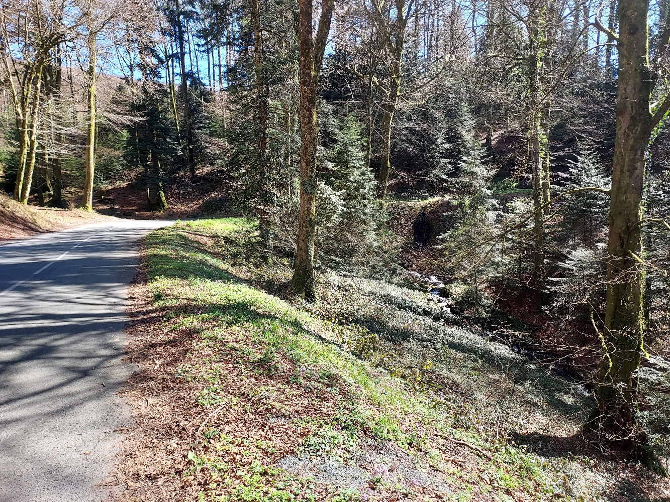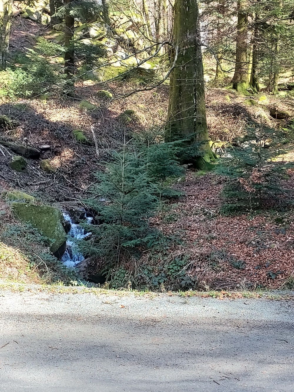 La route enjambe de nombreux ruisseaux et rivières et longe des sous bois mousseux où l´on peut apercevoir quelques chaos rocheux