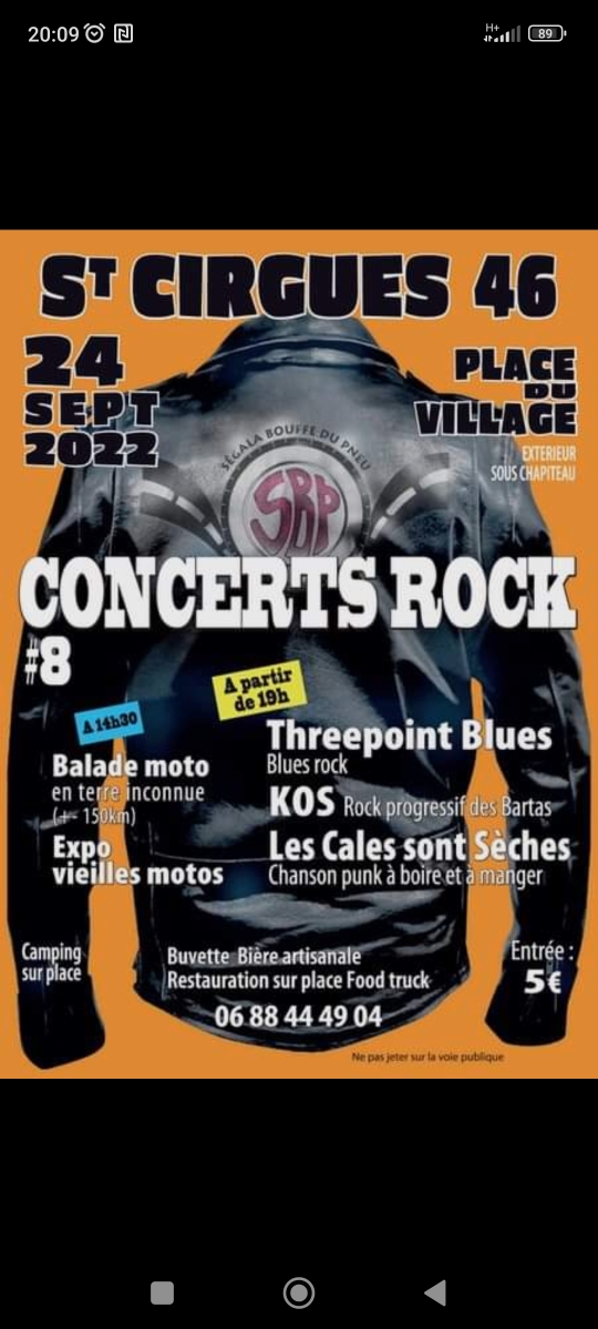 Merci a l'organisation Ségala Bouffe du Pneu , qui a programmé sa dernière sortie de l'année. Arrivé sur place, (St Cirgues) un repas et concert rock nous attend