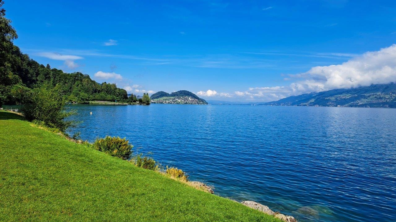 • Nous traversons le lac de Sihl avant d'arriver enfin à Einsiedeln. Une