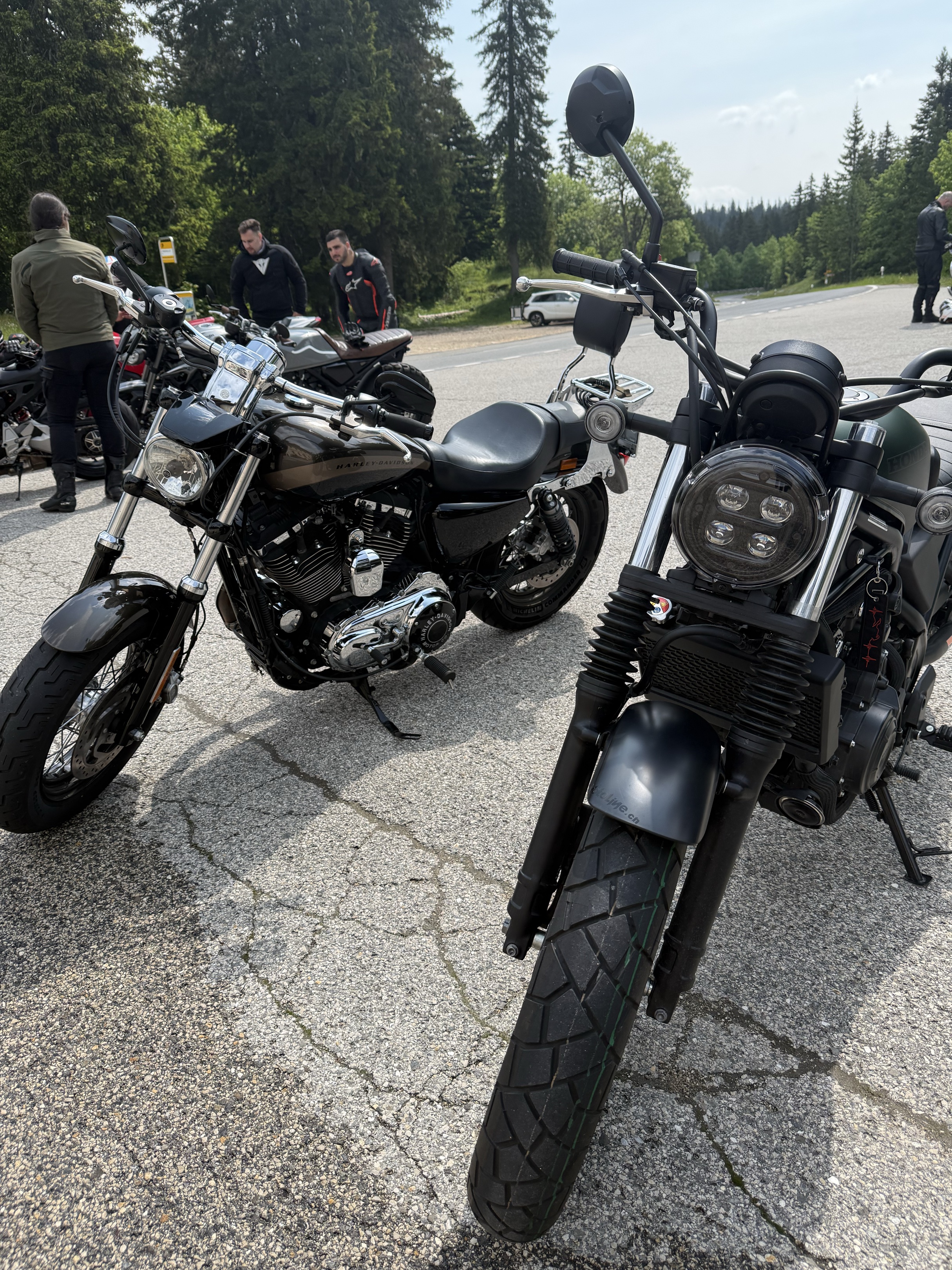 Qualité de la route superbe, beaux virages et un paysage magnifique ! On a commencé le trajet en bas du Marchairuz pour monter vers le lac de Joux. Ensuite on a fait le tour du lac pour redescendre par le Mollendruz… C’était extra je conseille vraiment ce tour à moto !