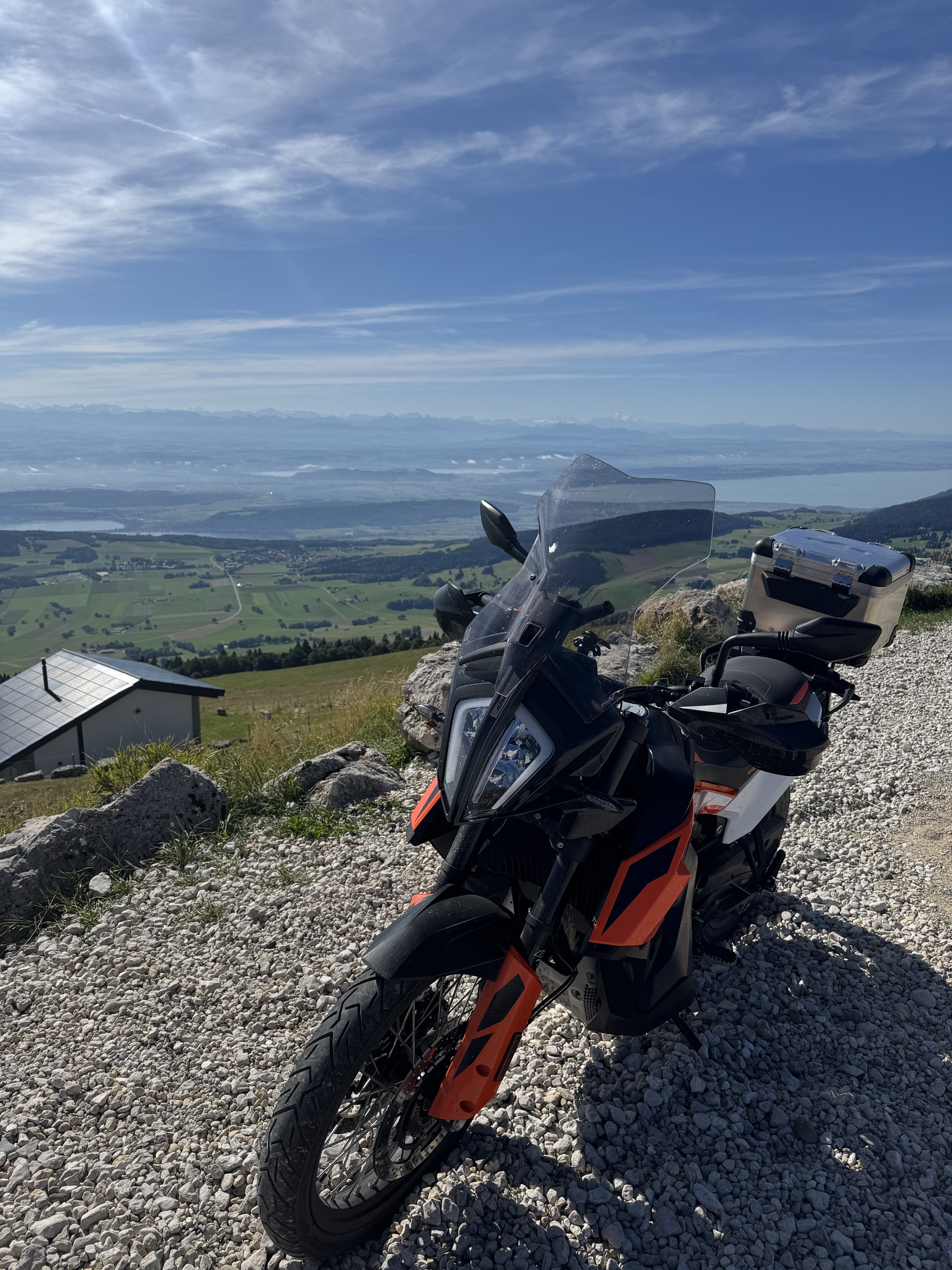 Ensuite la montée du Chasseral est bourrée de chicanes mobiles, mais c’est plein de contours et la vue devient de plus en plus belle au fil des km. Pis la deuxième partie, c’est la traversée du Jura. Super sympa, calme et avec peu de circulation. À éviter si vous le faites aux mêmes heures que moi, le Mollendruz. Entre les Marquez en plein essais et les quadricycles qui redescendent à 48 km/h, ça enlève de la beauté à cette route.