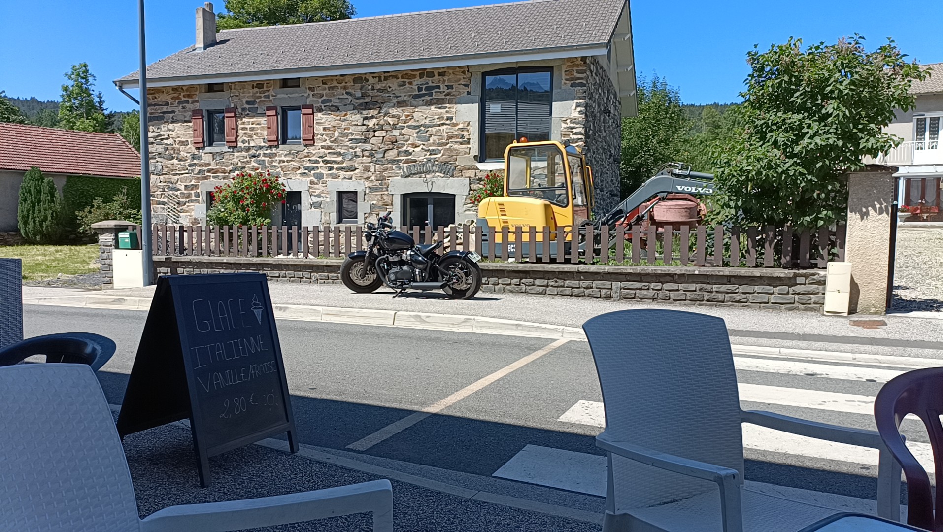 Pas un chat sur la route. Et un bon p'tit resto au passage, avec du fin gras du Mézenc...