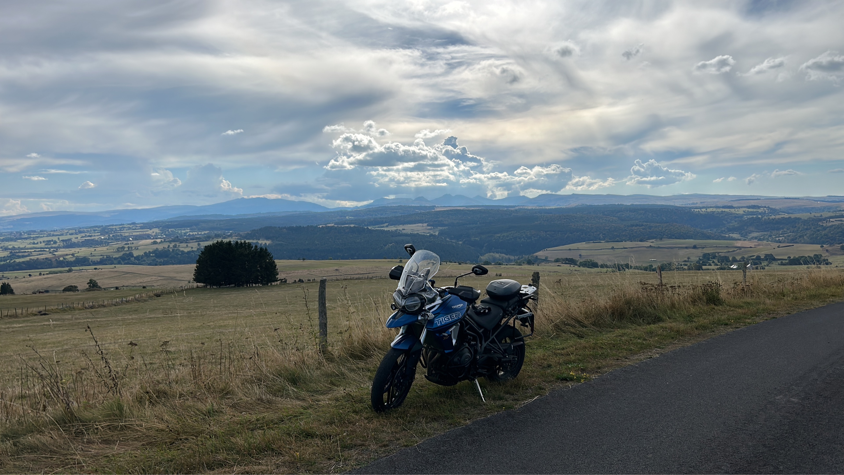 Mix de «  routes à chèvres » et de « routes à motards pressés » 😁. Très beau parcours avec panoramas à l’infini, traversée de forêt de hêtres magnifiques, quelques cols au dessus de 1100m, dont le col de Serre ( vers le puy mary et le col de pra de bouc vers le plomb du Cantal …