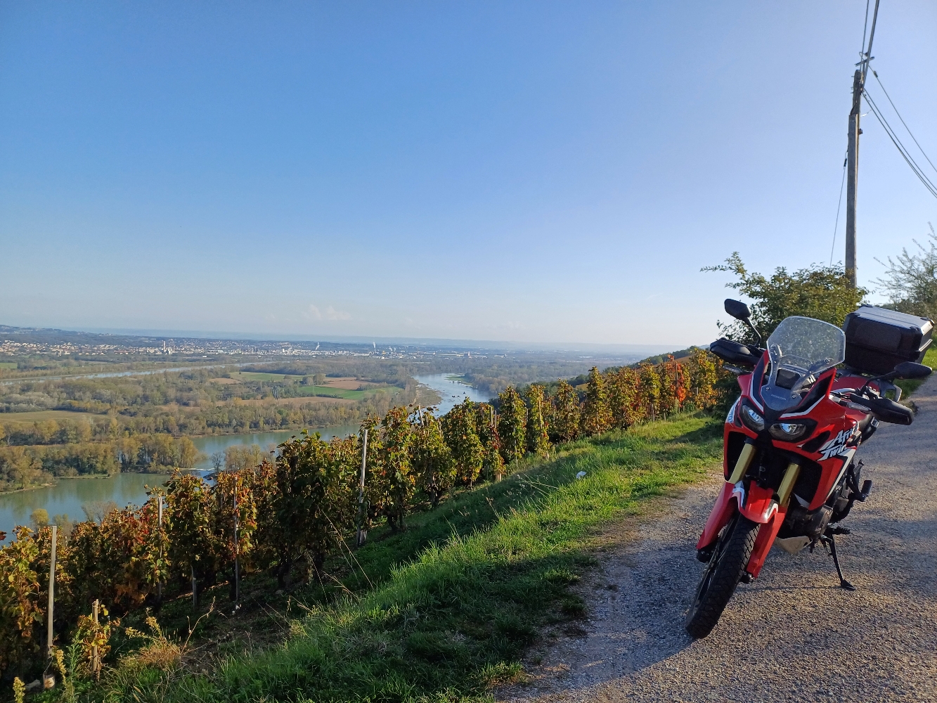 Découverte des vignobles côte rôtie et Saint Joseph, point de vue à coupé le souffle sur le Rhône et les vignes, attention l'itinéraire comporte de très petite route très étroite et comportant des épingles très serrer surplombant d'important relief sans barrière de protection Il vous faudra une certaine maîtrise pour les emprunter si votre moto est lourde et, où chargé. Soyez prudent