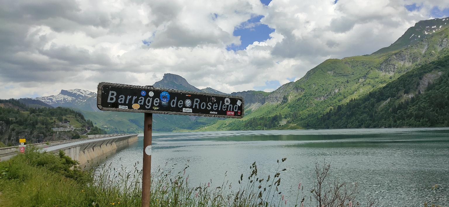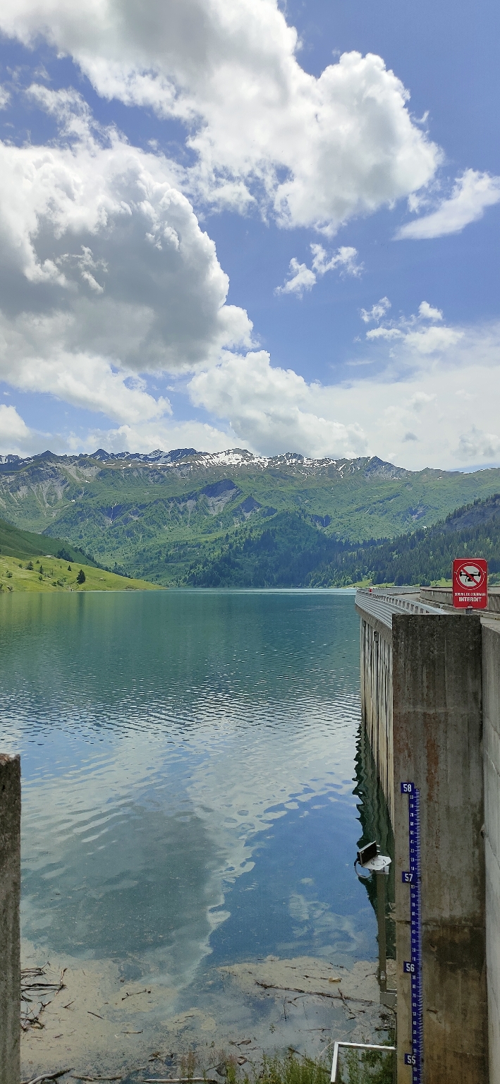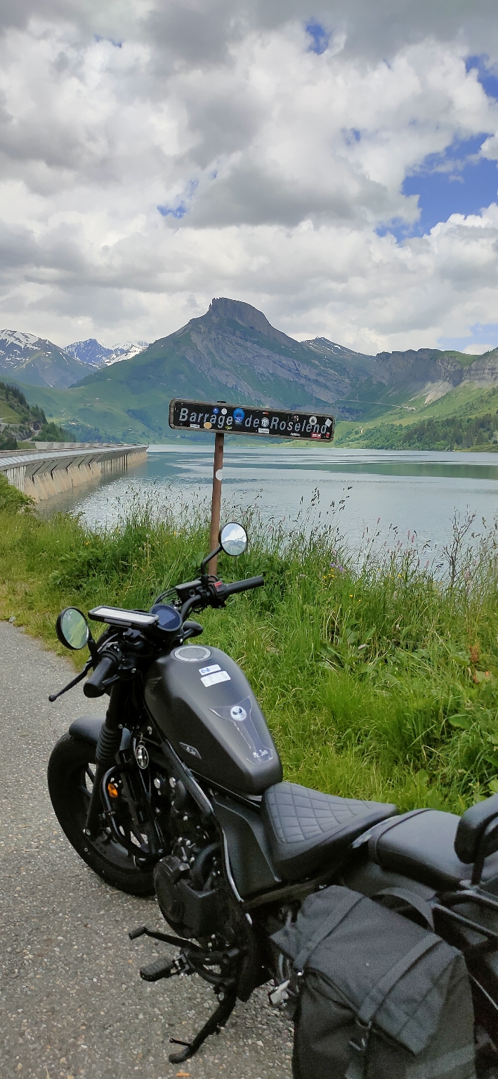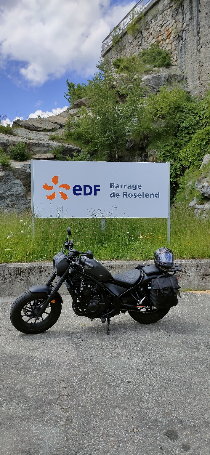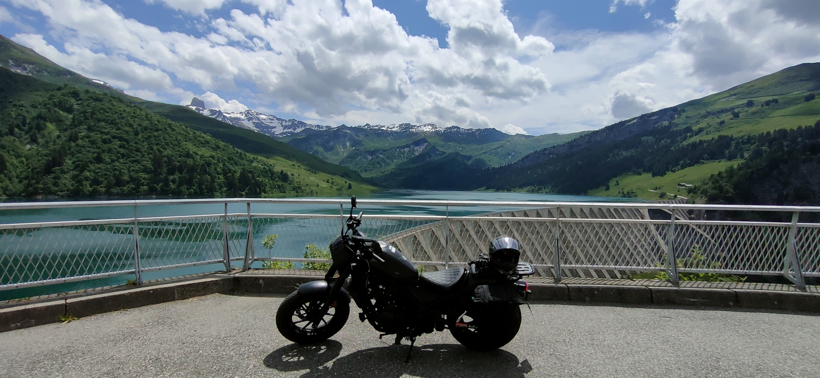 Allez je re traverse ce barrage nez au vent admirant cette étendue d'eau sur fond de montagnes enneigées pour me faire un surkiff 😁😎