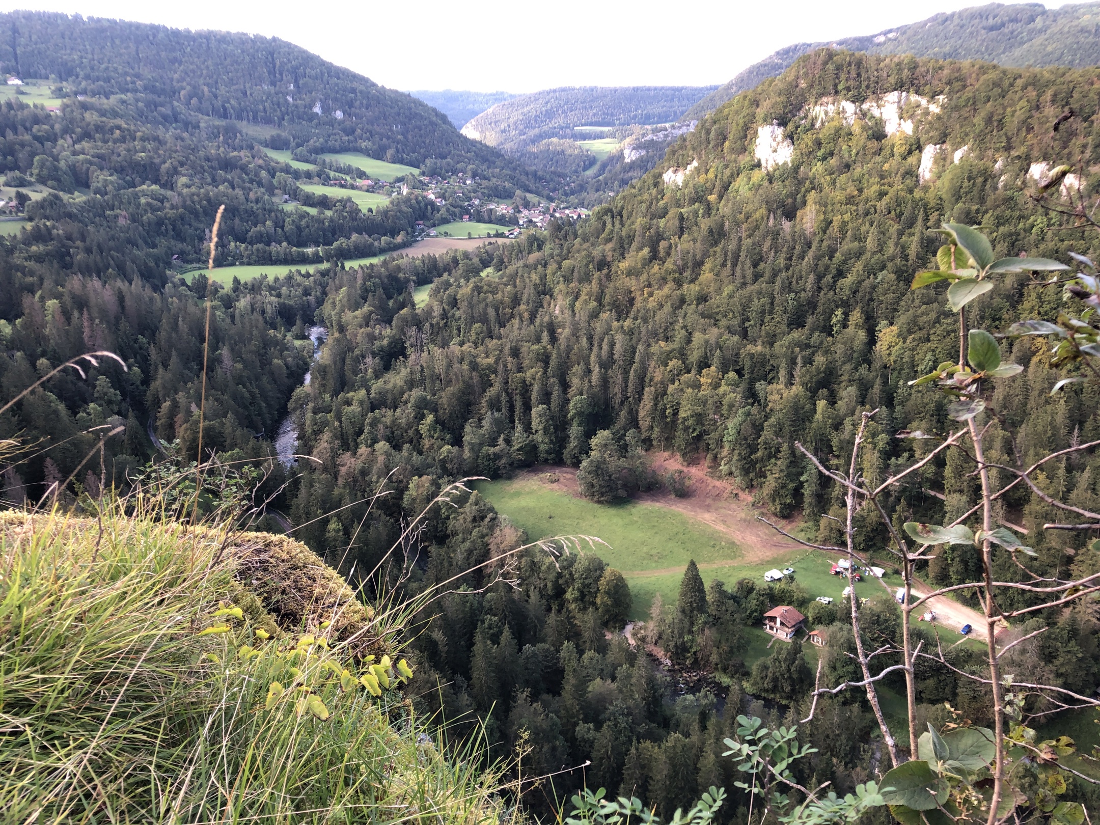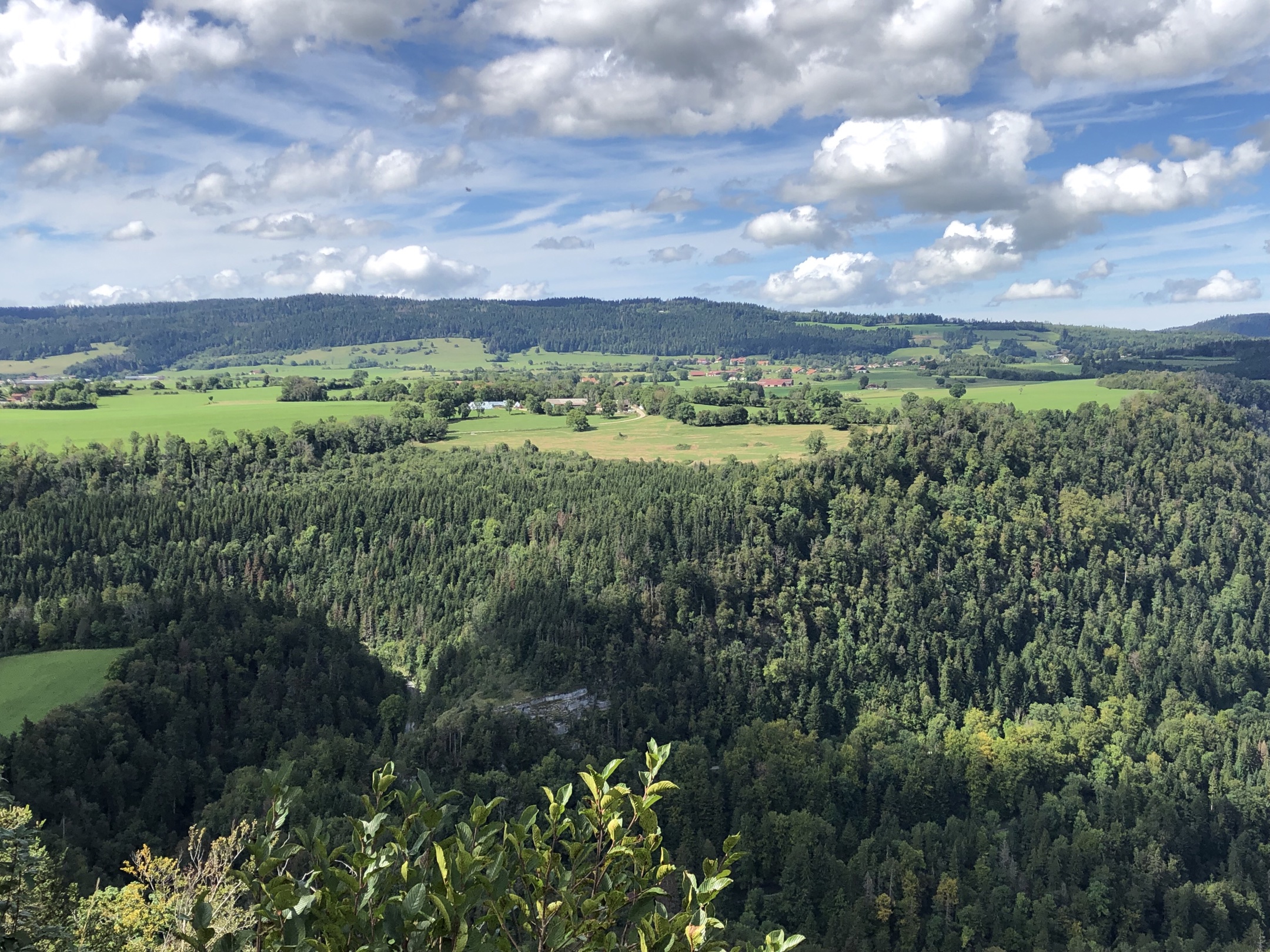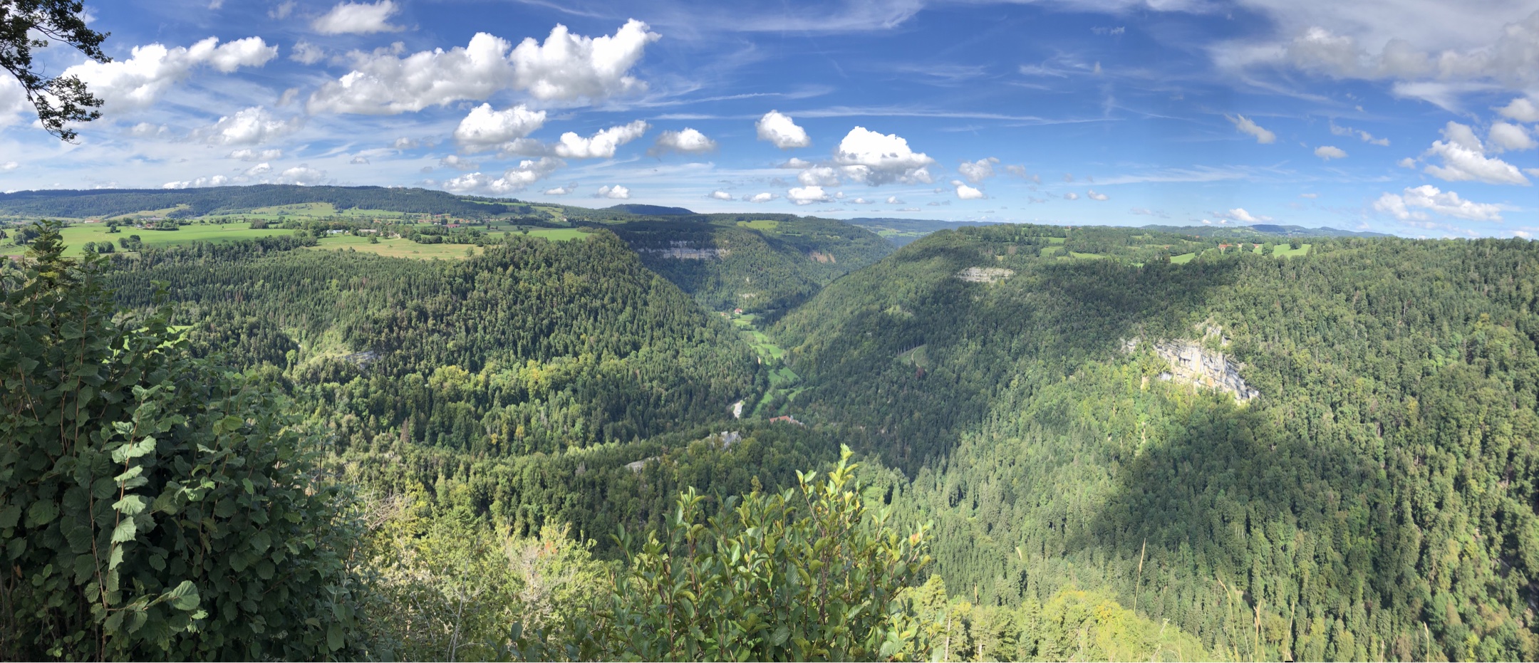 Point de vue du Dard à Sancey, avec son aire de pique-nique. Cirque de Consolation et point de vue de la Roche du prêtre, barrage du Châtelet, bèlvedere des bassins du Doubs, Saut du Doubs, Corniche de Goumois