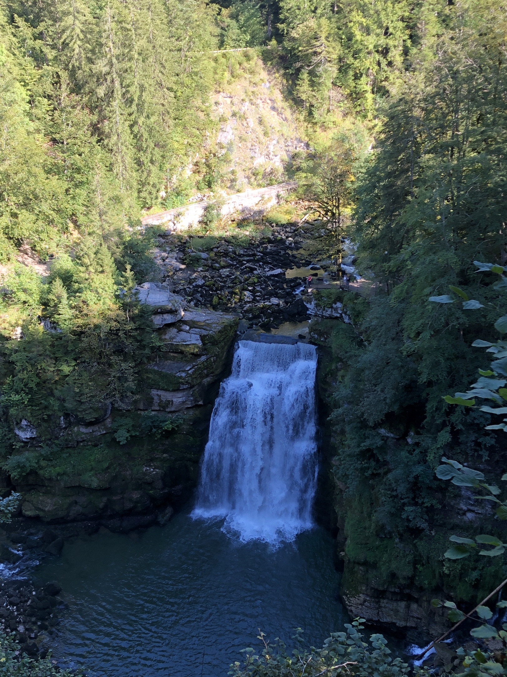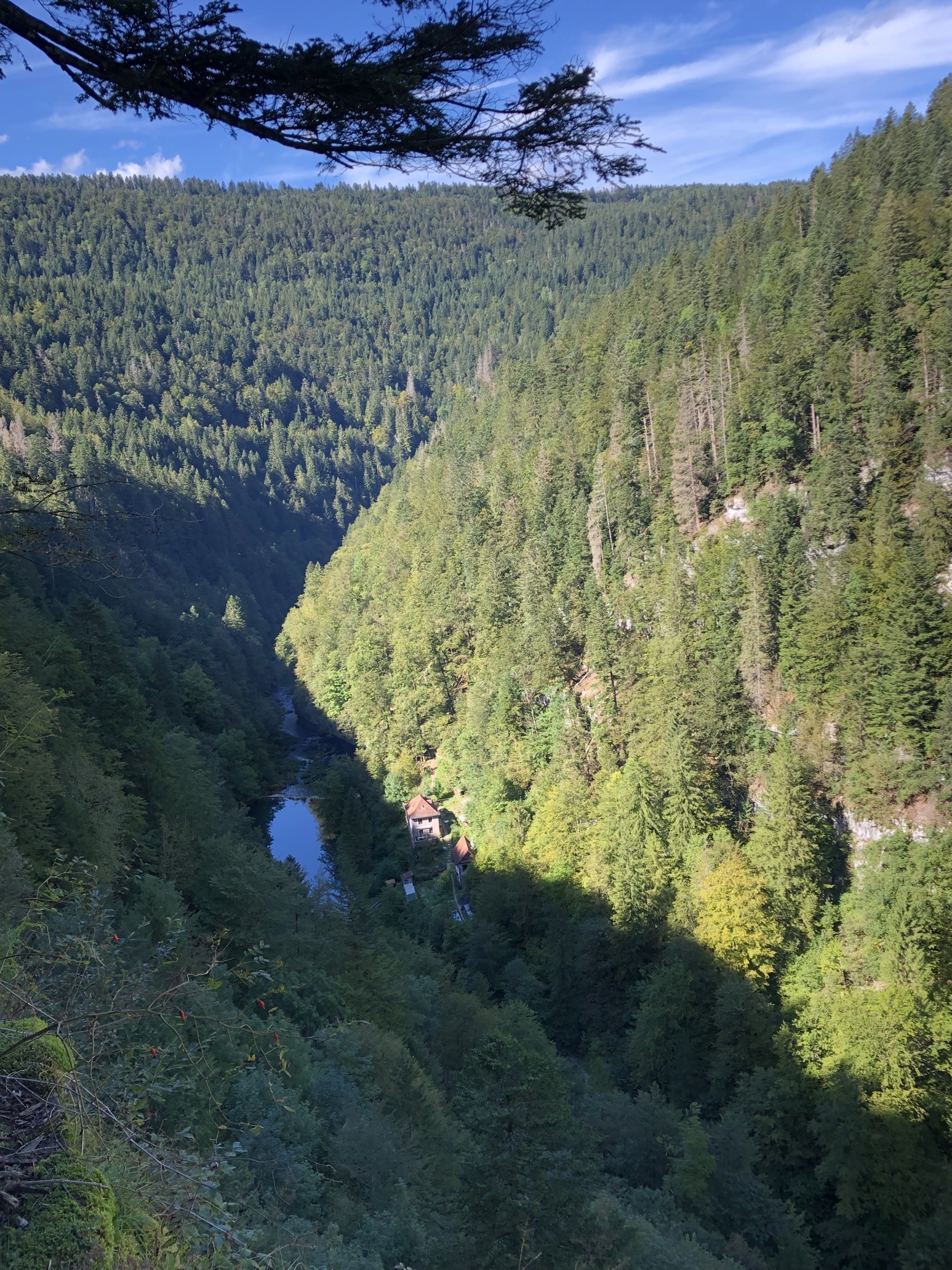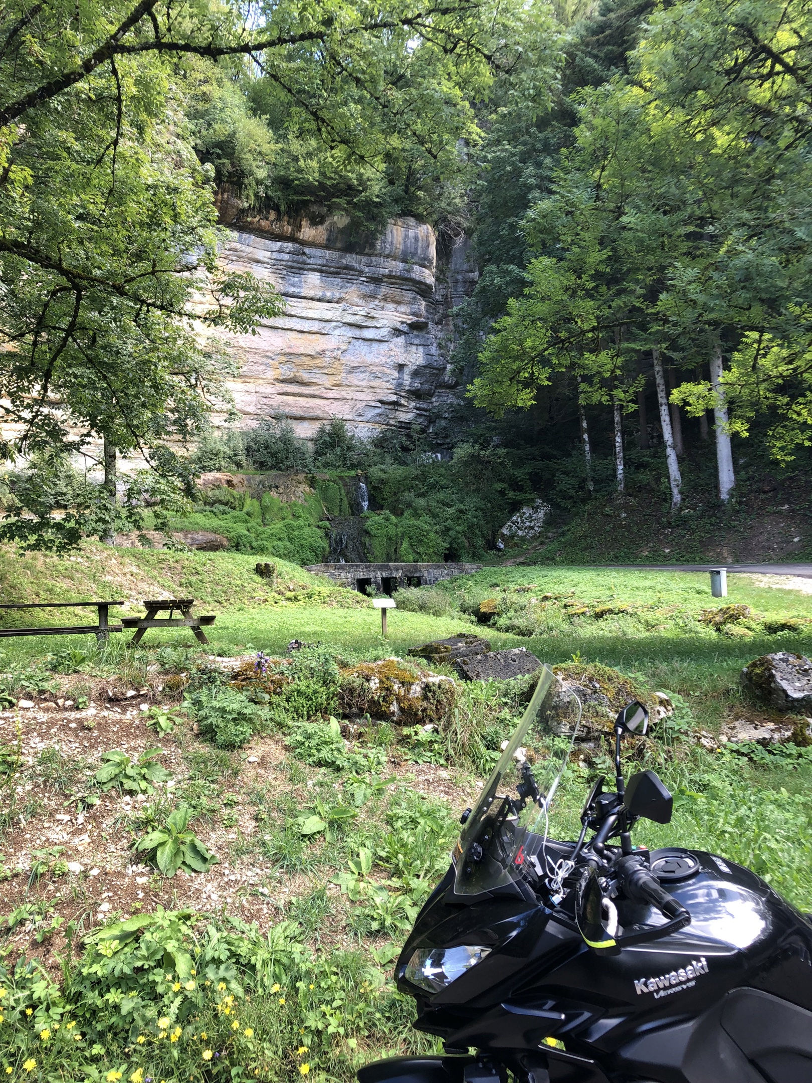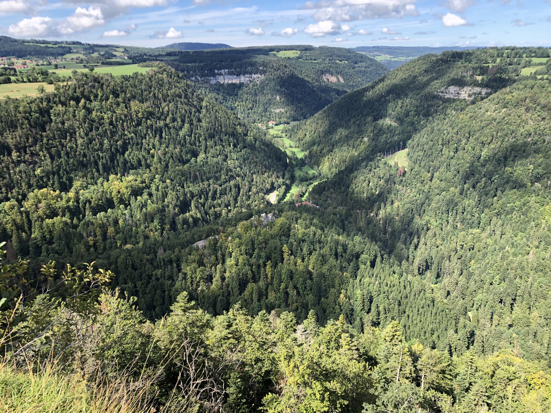 Point de vue du Dard à Sancey, avec son aire de pique-nique. Cirque de Consolation et point de vue de la Roche du prêtre, barrage du Châtelet, bèlvedere des bassins du Doubs, Saut du Doubs, Corniche de Goumois