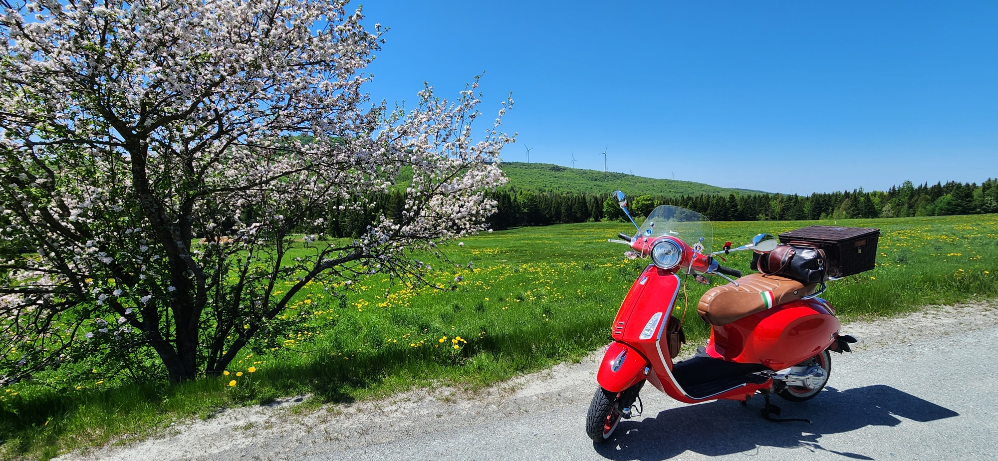 Des paysages à couper le souffle, de beaux petits villages et beaucoup de soleil. Voilà la recette d'une sortie Vespa réussie! Ce parcours est le 3e jour sur 3 jours d'un voyage en solo. Highlight au paysage parsemée d'éoliennes, très impressionnant et apaisant. East Angus est une charmante petite ville où j'ai dormi une nuit.