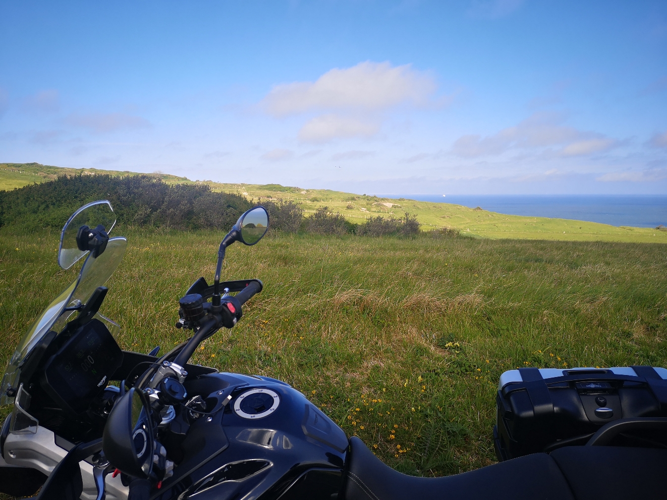 Route des 2 Caps avec quelques virages, points de pauses sympas tout au long du parcours avec restauration rapide ou plus 👍🏍️ Attention au vent de bord de mer. Zones de stationnement moto faciles et parfois ombragées. Accès plages et chemins côtiers tout au long du parcours.