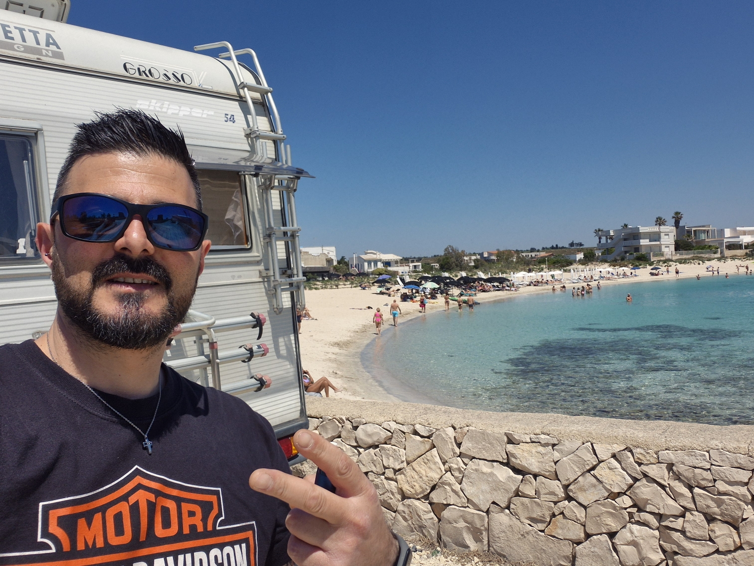 "Asfalto serpeggiante tra l'azzurro intenso di due mari, profumo di macchia mediterranea che inebria a ogni curva, e la brezza che accarezza il viso mentre la moto danza tra le scogliere e le distese dorate. Un viaggio nel cuore del Salento, dove la bellezza selvaggia della costa si fonde con il calore avvolgente della sua terra."