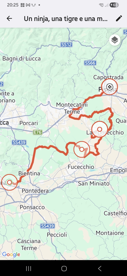 La destinazione, come è noto a tutti, non è la cosa più importante in un viaggio ma questa volta, fate un'eccezione! Pistoia regala un'atmosfera accogliente, creata tra i piccoli vicoli del centro. Ricorda un po' Firenze, un po' Lucca. La strada percorsa è piacevole; si sale sopra le colline di Cerreto Guidi, attraverso vigneti e ulivi, si arriva al Padule di Lamporecchio, e curve, molte curve, salendo fino a San Baronto e poi giù verso Cantagrillo.