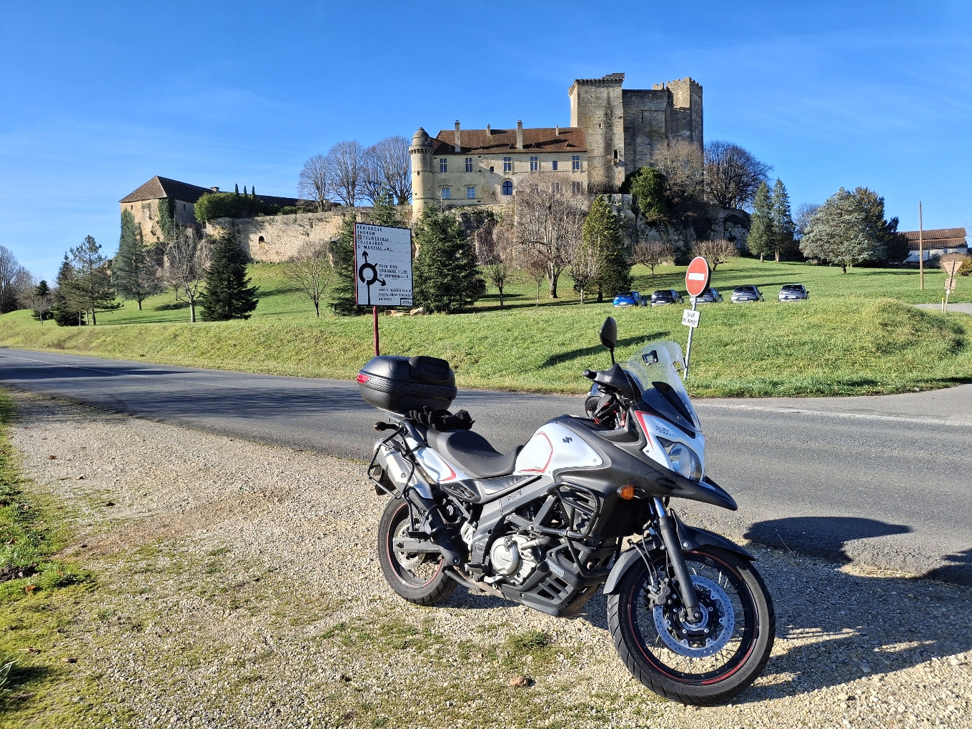 Profiter de cette magnifique journée ensoleillée de Décembre sans oublier l'accoutrement multicouche et les poignées chauffantes pour ne pas craindre le froid et partir à 10h pour laisser le temps aux endroits gelés de se réchauffer. C'est donc parti pour 6h de moto safe pour profiter des départementales à flancs de coteaux avec points de vue magique à chaque virage. L'air frais sur le visage, les silhouettes des vaches sur une mer de rosée. Très belle balade avant l'hivernage.