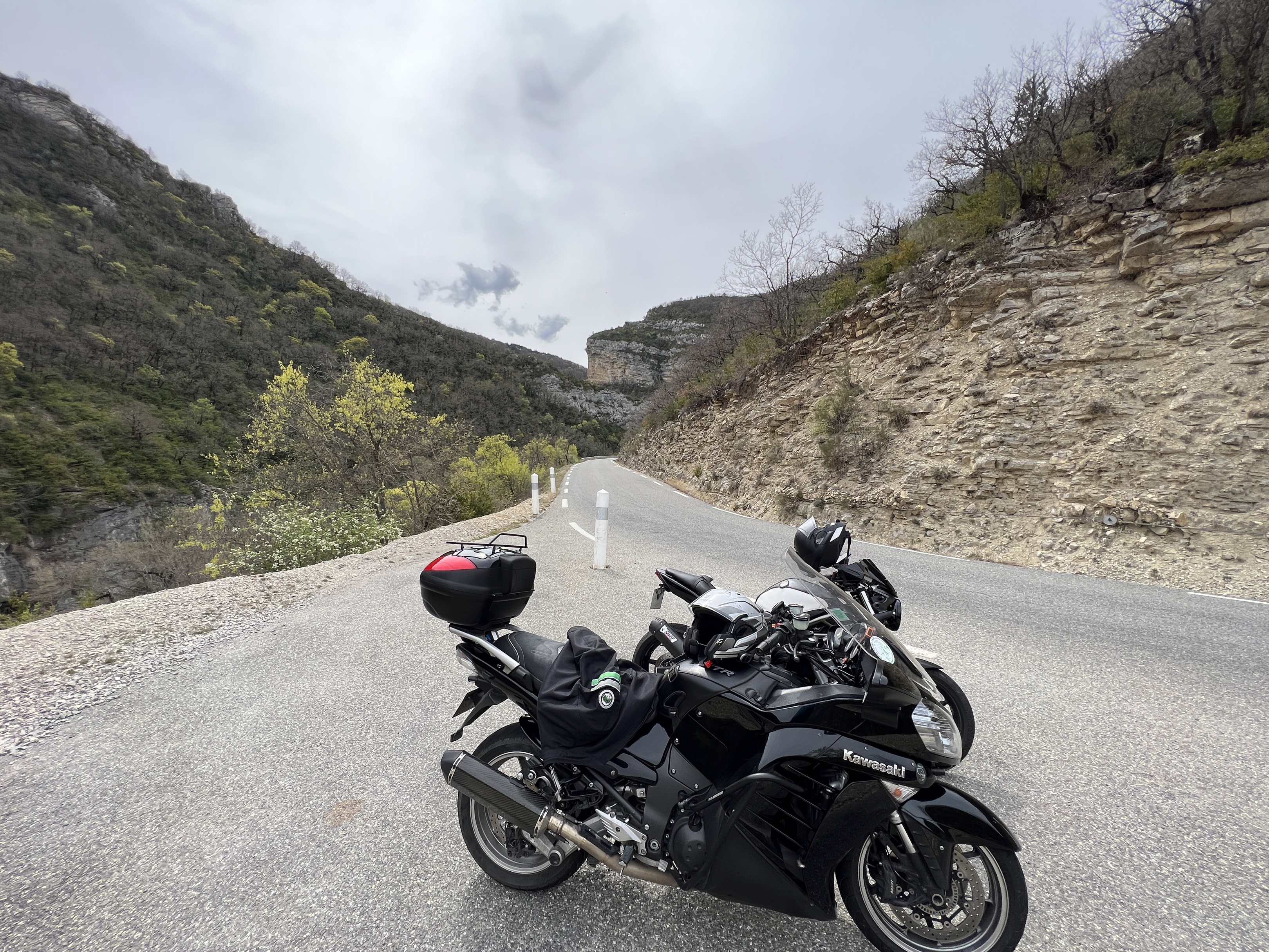 Très belle balade dans les gorges de la Meouge, de belles routes avec de beaux virolos à faire calmement ou en attaquant un peu. Pas trop de monde en ce début avril avec une bonne température de 15-20C selon l’altitude.