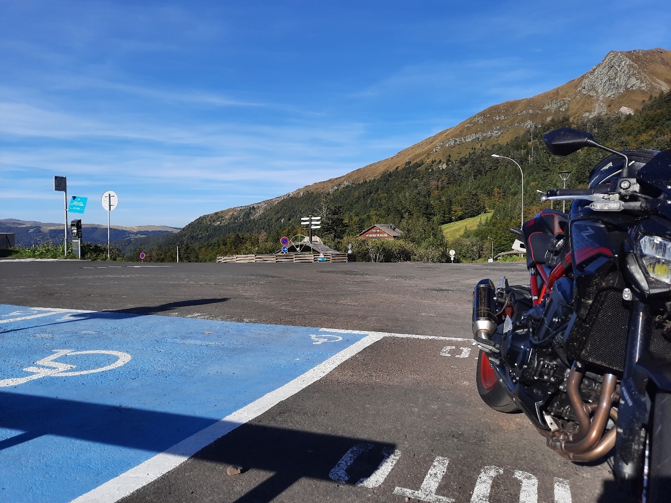 Départ par Lapalisse vers le Mayet de Montagne. Super route très roulante dans les collines puis traversée de la montagne bourbonnaise par les petites routes perdues très sinueuses. Puis la célèbre route de Thiers et grandes départementales bien larges pour enrouler pépère jusqu'à Vic le Conte. Ensuite, super route de la montée vers Besse par Chempeix. Plus ça monte, plus ça se resserre. Idéal pour dégager les 'poils' des pneus neufs sans exploser le compteur. Après SuperBesse, tour du Sancy par le droite ou la gauche sur des routes de montagne aux points de vue splendides pour redescendre sur Le Mont Dore et retour par le lac de Guéry, Orcival, Pontgibaud pour le plaisir des virolos plus rapides. Enfin, redescende par les petites routes des Combrailles vers Ebreuil, Saint-Pourçain-sur-Sioule.